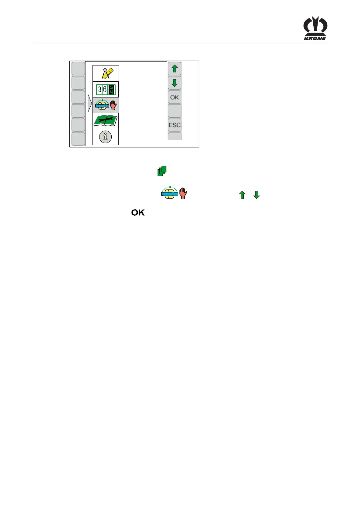 • Menu 3-1 „Manual operation baler”, in case of an opened bale chamber
