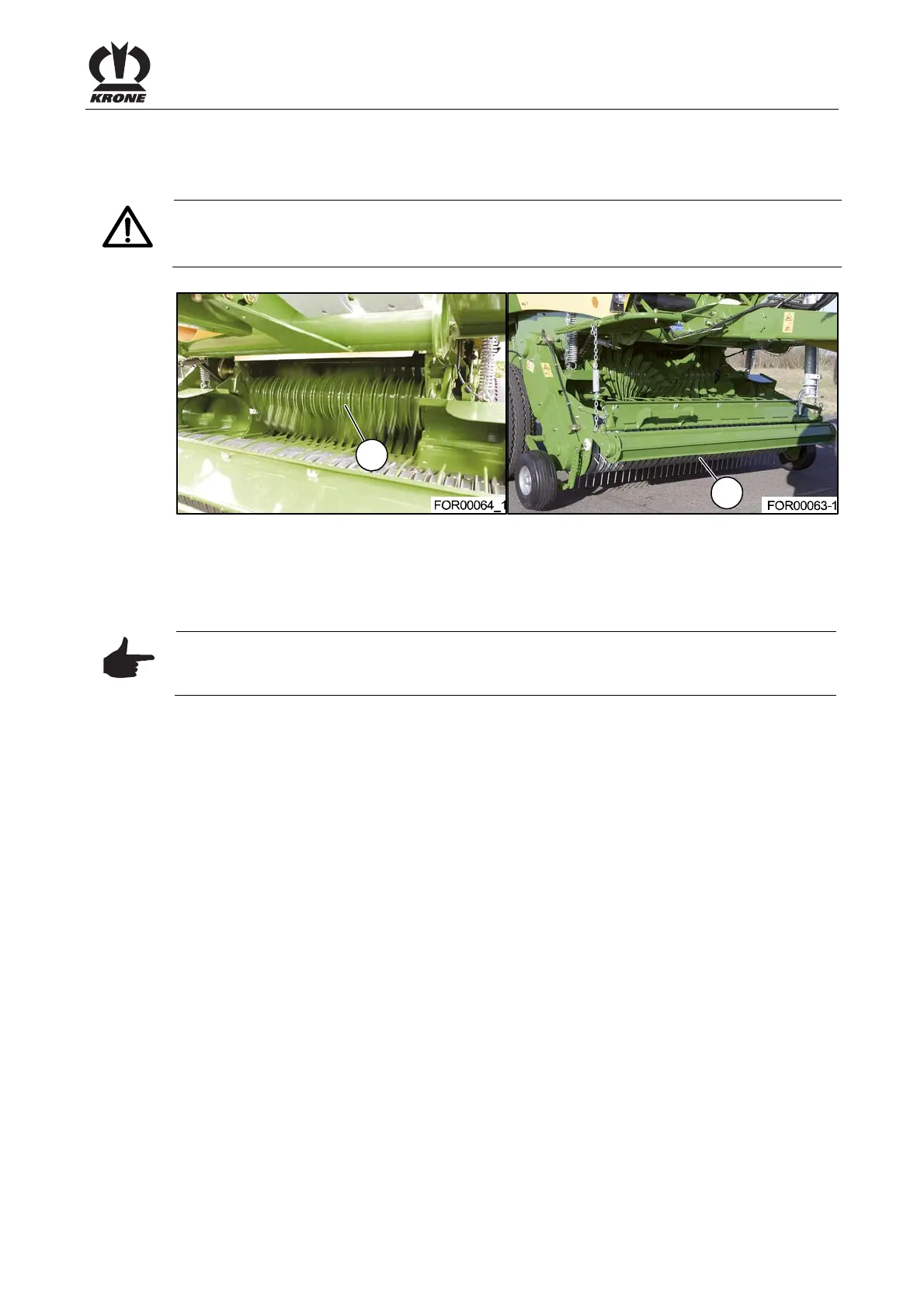 Pos: 55.170.3 /BA/Bedi enung /Rundballenpr esse/Gutflussbloc kaden entfernen/Ac htung-Scharfe Bautei le @ 181\mod_137716109 9222_78.docx @ 1556454 @ @ 1