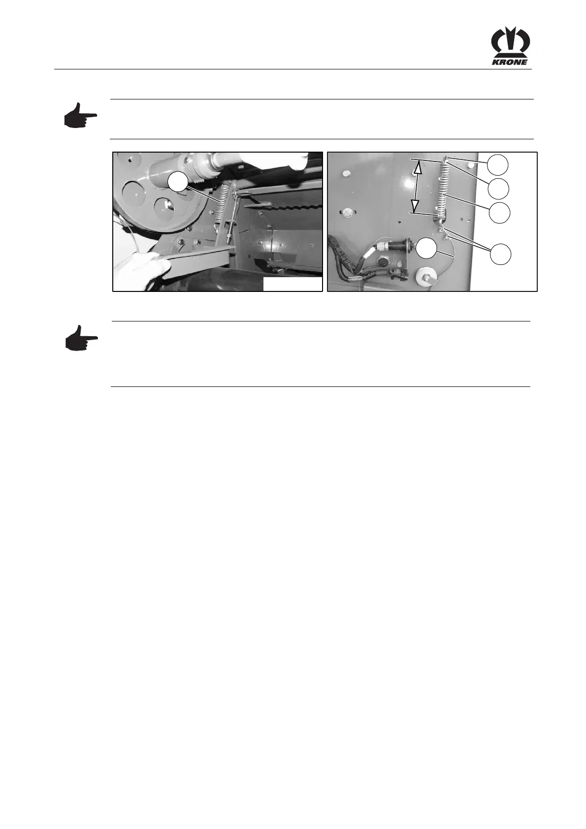 If the settings on the spring (1) are changed, the spring (4) must be adjusted accordingly: