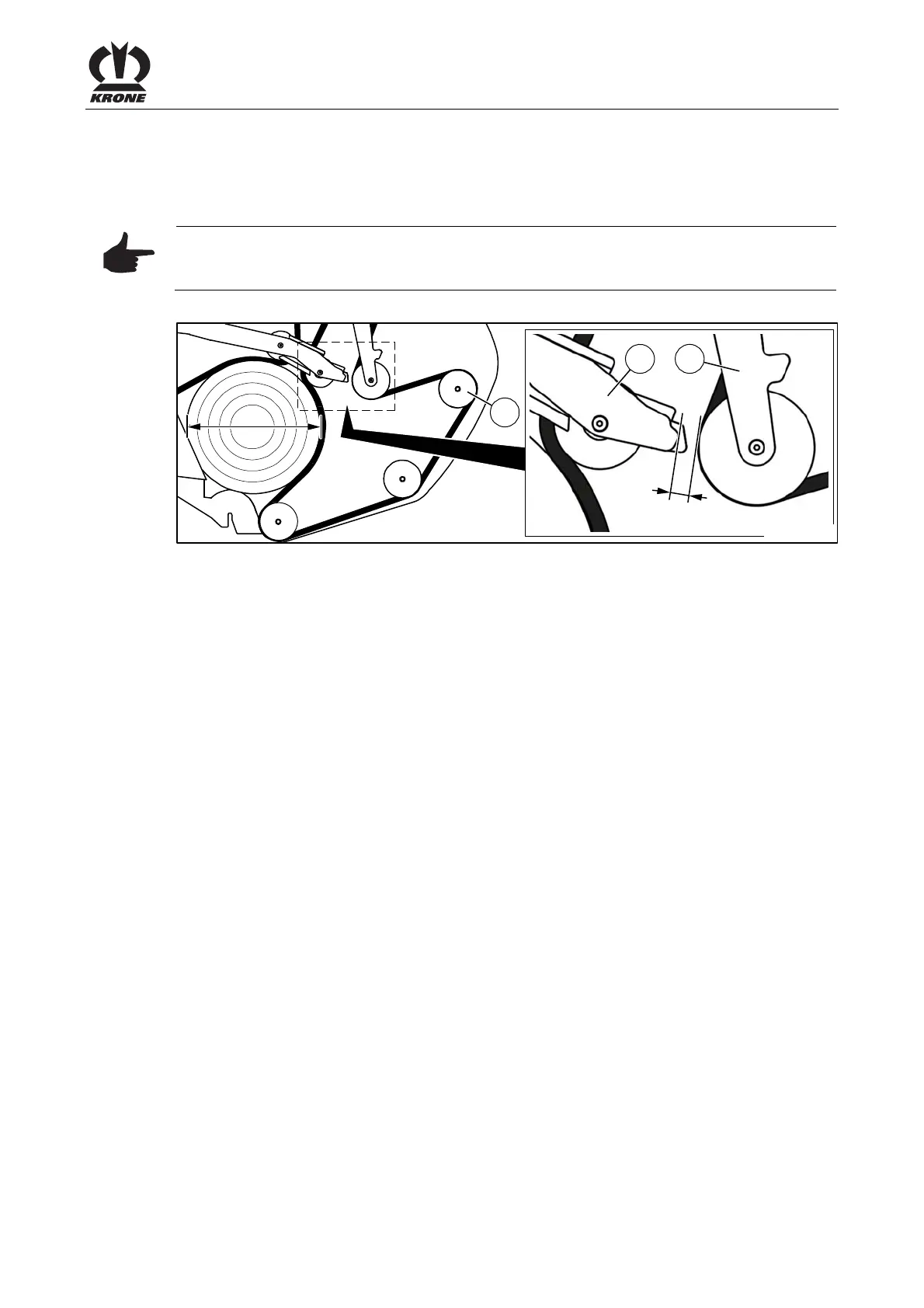 Pos: 59.102.4 /BA/W artung/Rundballenpres se/Umlenkrolle versetzen/Hinweis: Pr üfung nach ca. 1000 produzi erten Ballen durc hführen @ 215\mod_13908164 03004_78.docx @ 1761845 @ @ 1