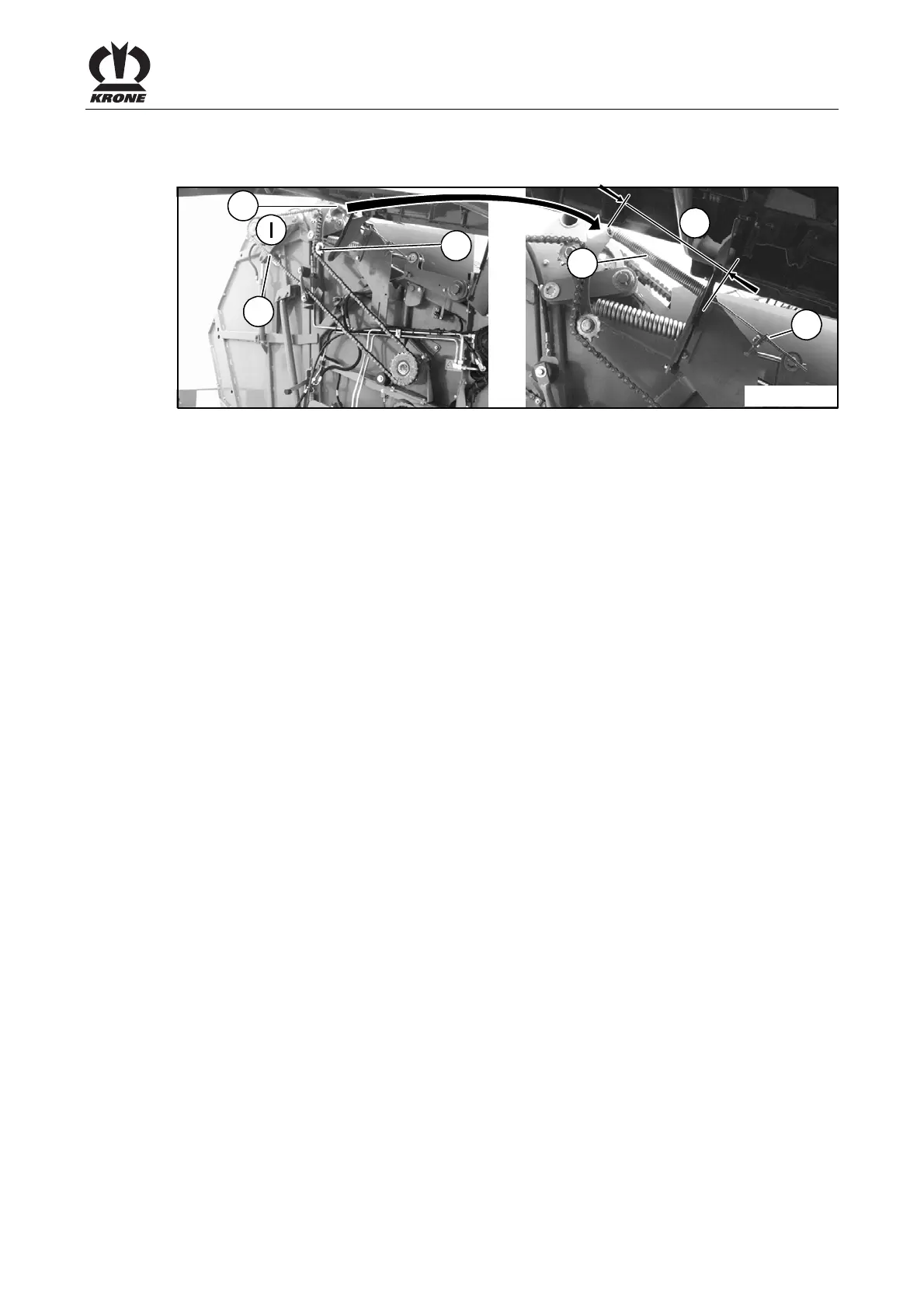 Pos: 59.119 /BA/W artung/Rundballenpres se/Spannen Ketten hin terer Rollbodenantri eb CV150/ CV210 @ 75\mod_130943 8813086_78.doc x @ 663512 @ @ 1