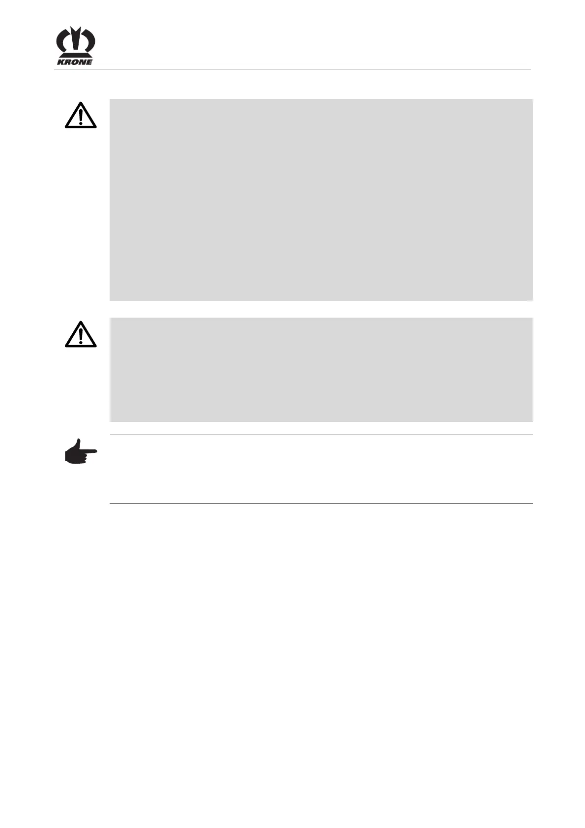 Repair work on the hydraulic system may only be performed by authorised KRONE