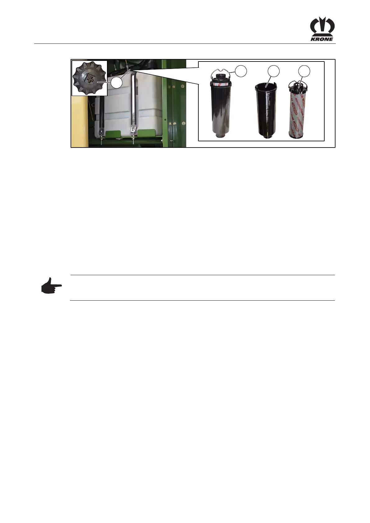 The filter element must be ordered from the KRONE spare parts warehouse quoting part