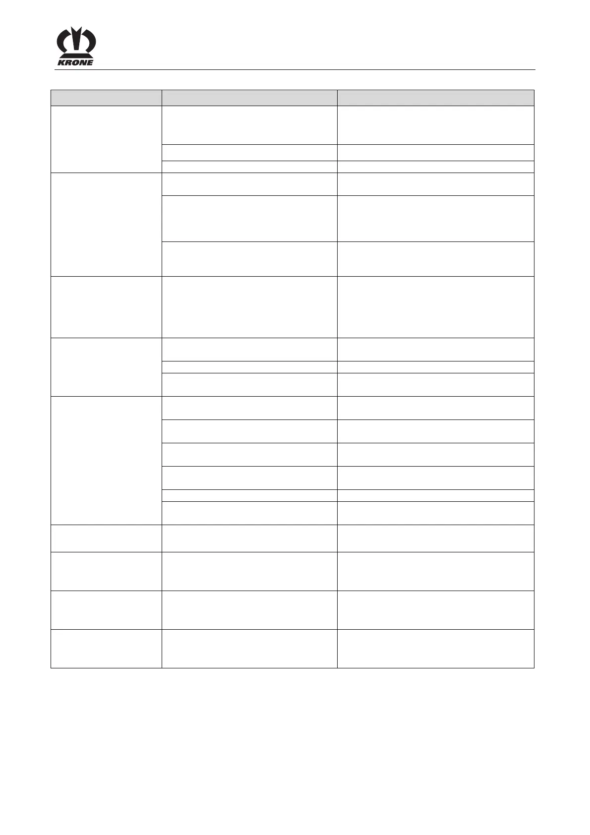 Malfunction Possible cause Remedy