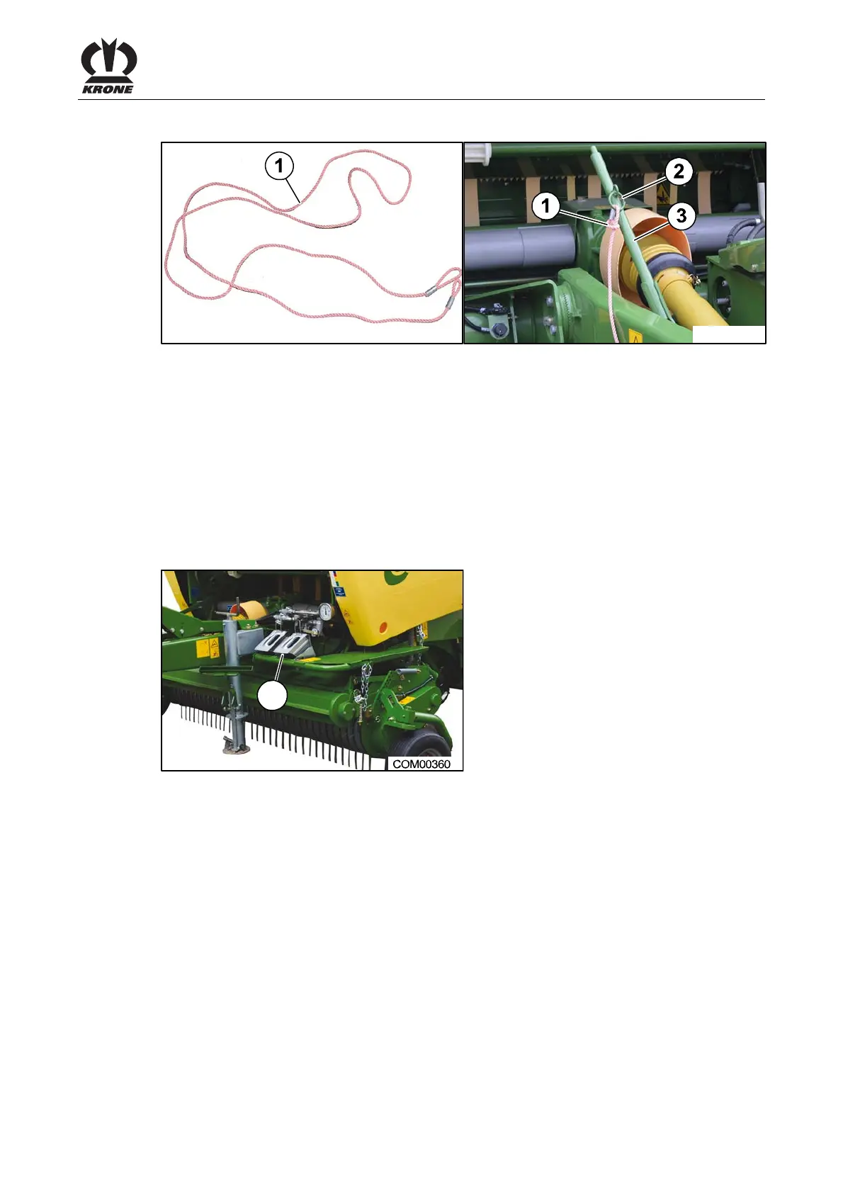 • Attach the other end of the safety cable to a suitable point at the rear of the tractor.