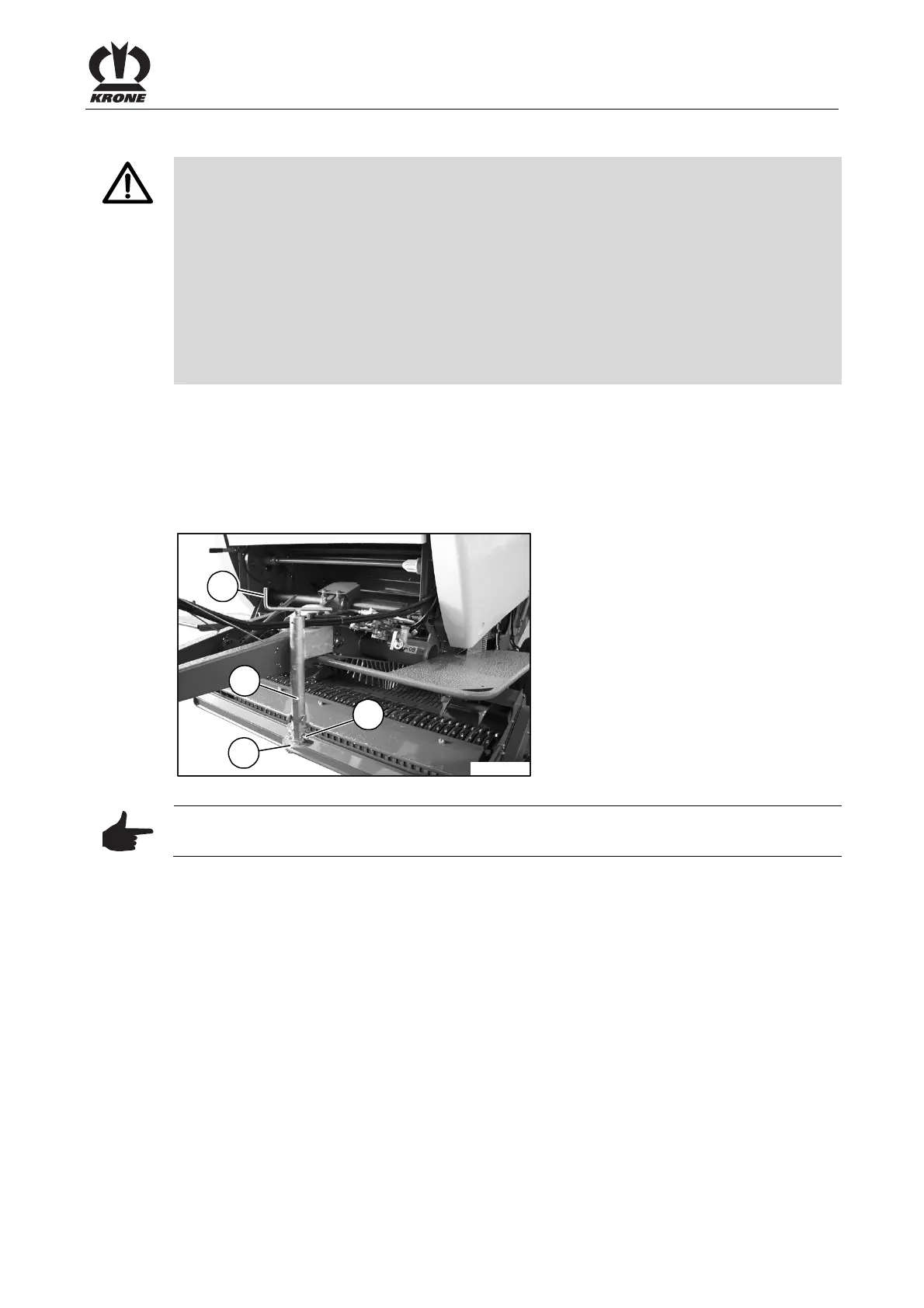 Pos: 44.9 /BA/Inbetr iebnahme/Rundballen presse/Hinweis Abst ellstütze bewegen @ 32\ mod_1253539702220_78. docx @ 314734 @ @ 1