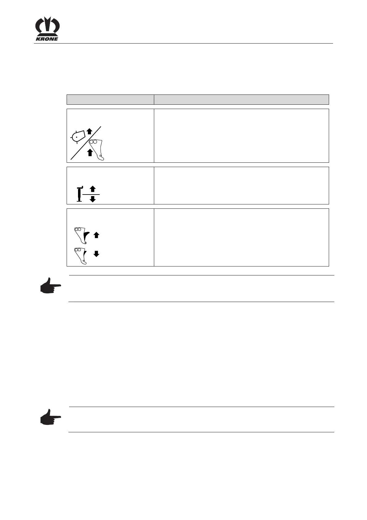 • Float position (yellow 3+): Lower the pick-up or blade