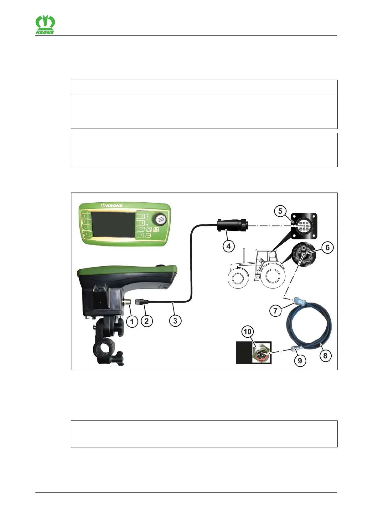 To mount the terminal in the tractor cabin, observe the provided operating instructions of