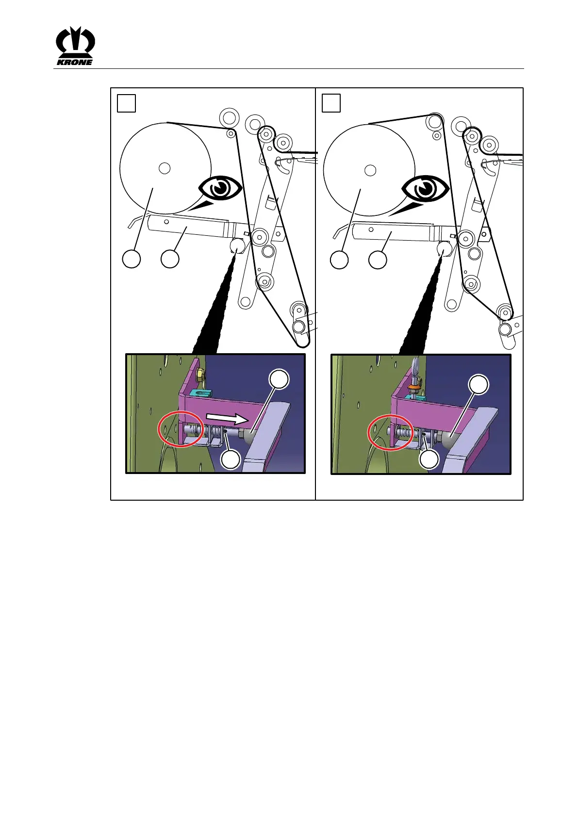 Pos: 6.24 /BA/Eins tellungen/Run dballenpresse/F olienbremse einstellen_Verriegel ungsbolzen_ bild_Netz- und Folienbind ung_ALLE Co mprima @ 470\ mod_147152202 6393_78.doc x @ 3178499 @ @ 1