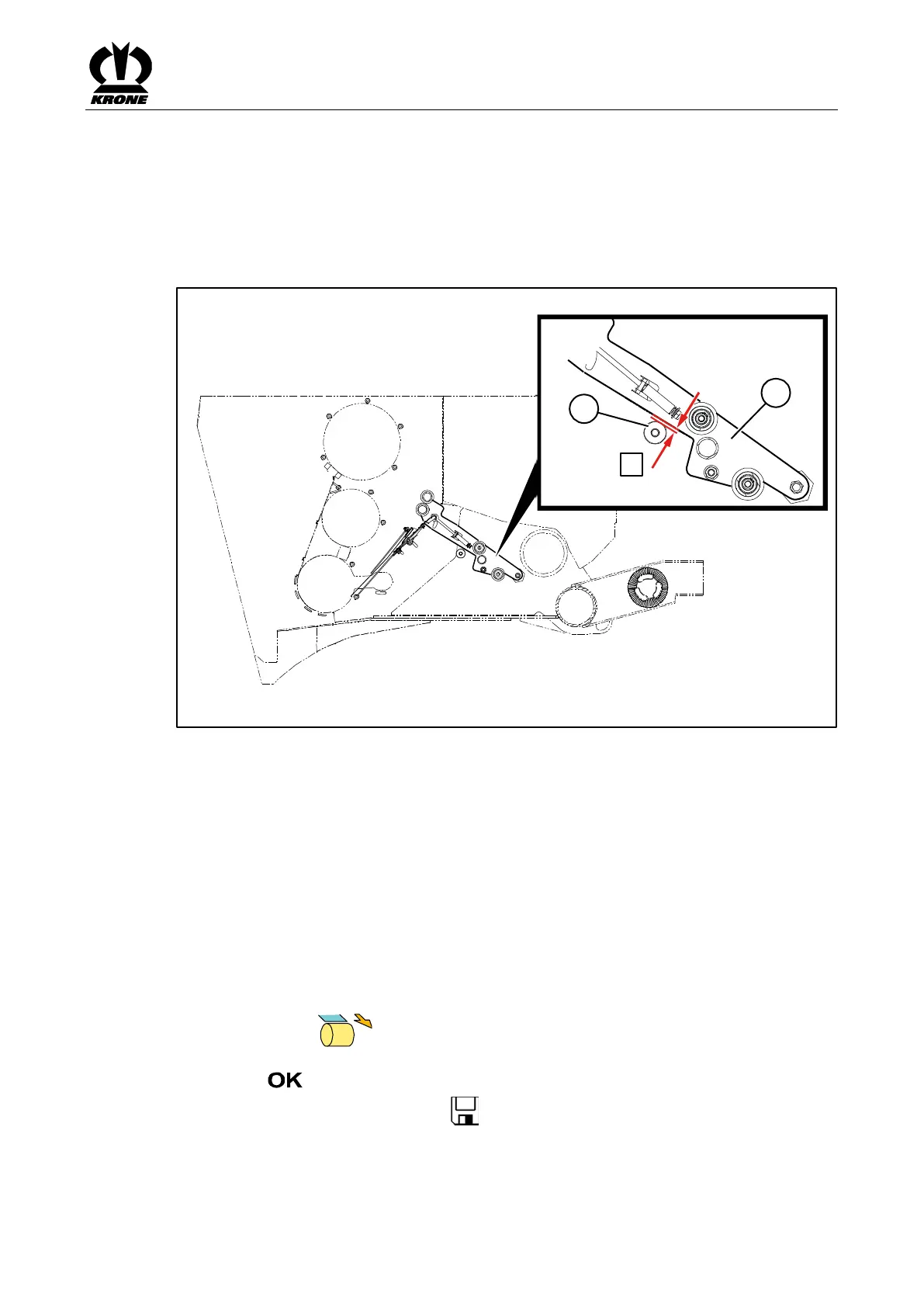 Pos: 6.37.4 /Beipac ks/Rundballen pressen/Folie nbindung/Mod ulgruppen Brems e / Spiralwalz e/Zuführpositio n prüfen und einstellen_Bild @ 396\mod_ 1446733410985_ 78.docx @ 2 819755 @ @ 1