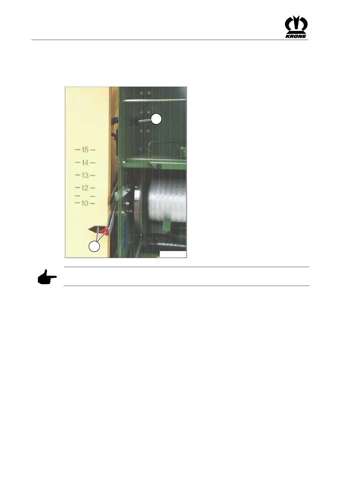2. Manually raise the baling pressure indicators (1) to the desired position (bale diameter) (e.g.
