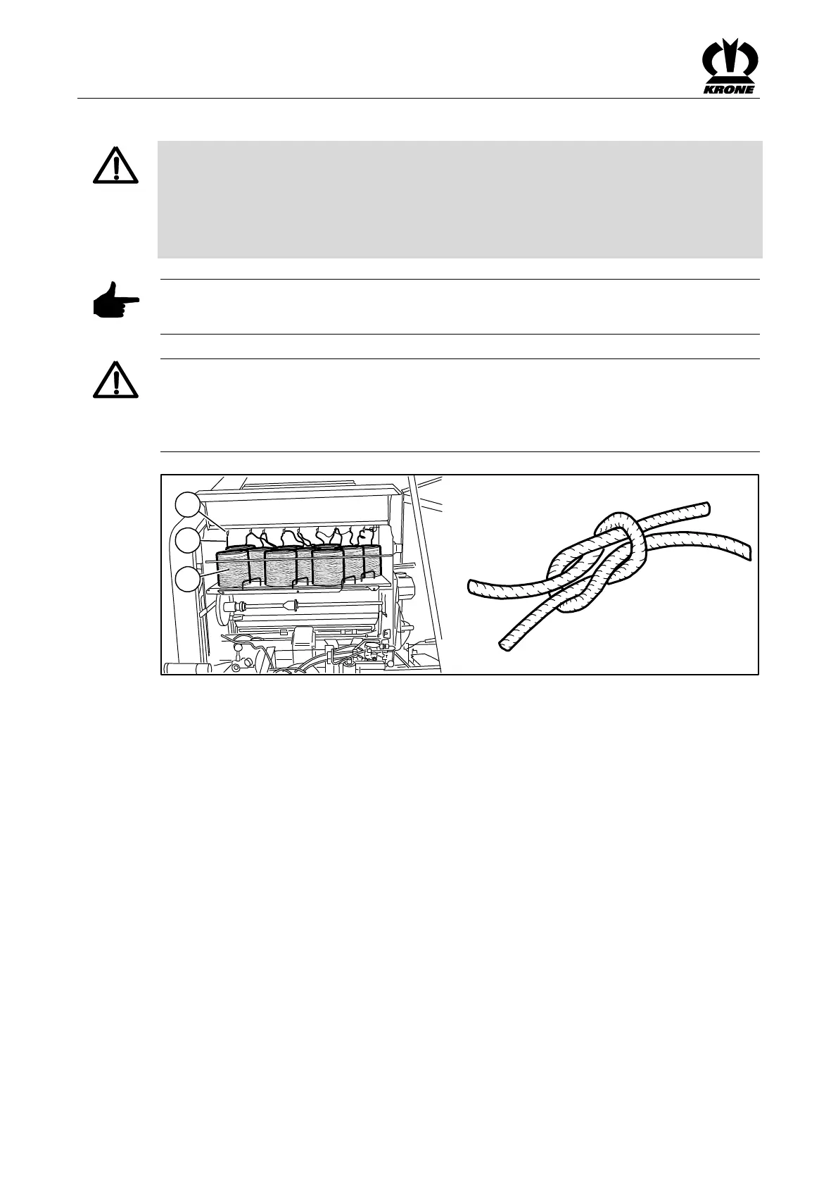 Pos: 48.95.14 / BA/Sicherheit/ 7. Gefahrenhinw eise alt/Rundballe npresse/Warn ung - Bindung eine Person, G arnbindung @ 342\mod_14 32904375119 _78.docx @ 259 2808 @ @ 1