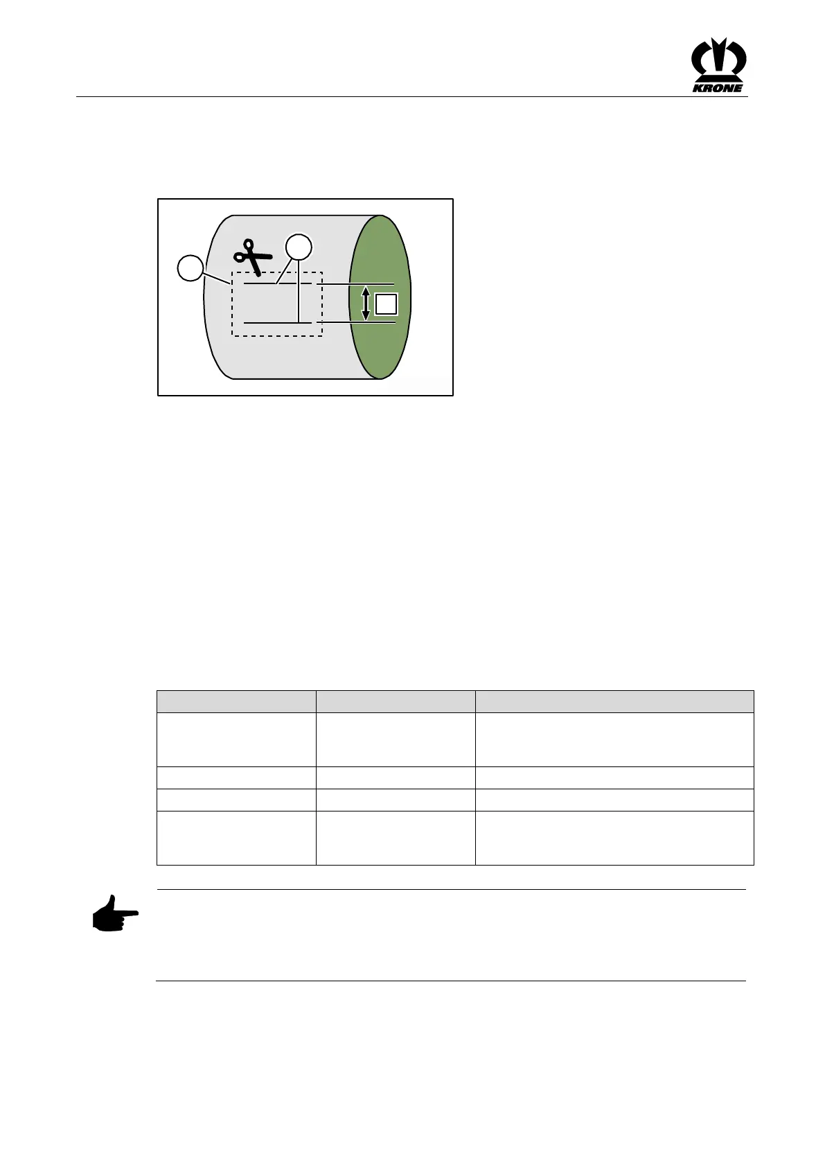 Pos: 48.99.56 / BA/Bedienung /R undballenpresse/ Folienbind ung/Dehnung d er eingelegten F olie prüfen_Ta belle_BA_alle Co mprima @ 4 90\mod_148516 6600817_78.d ocx @ 329107 1 @ @ 1