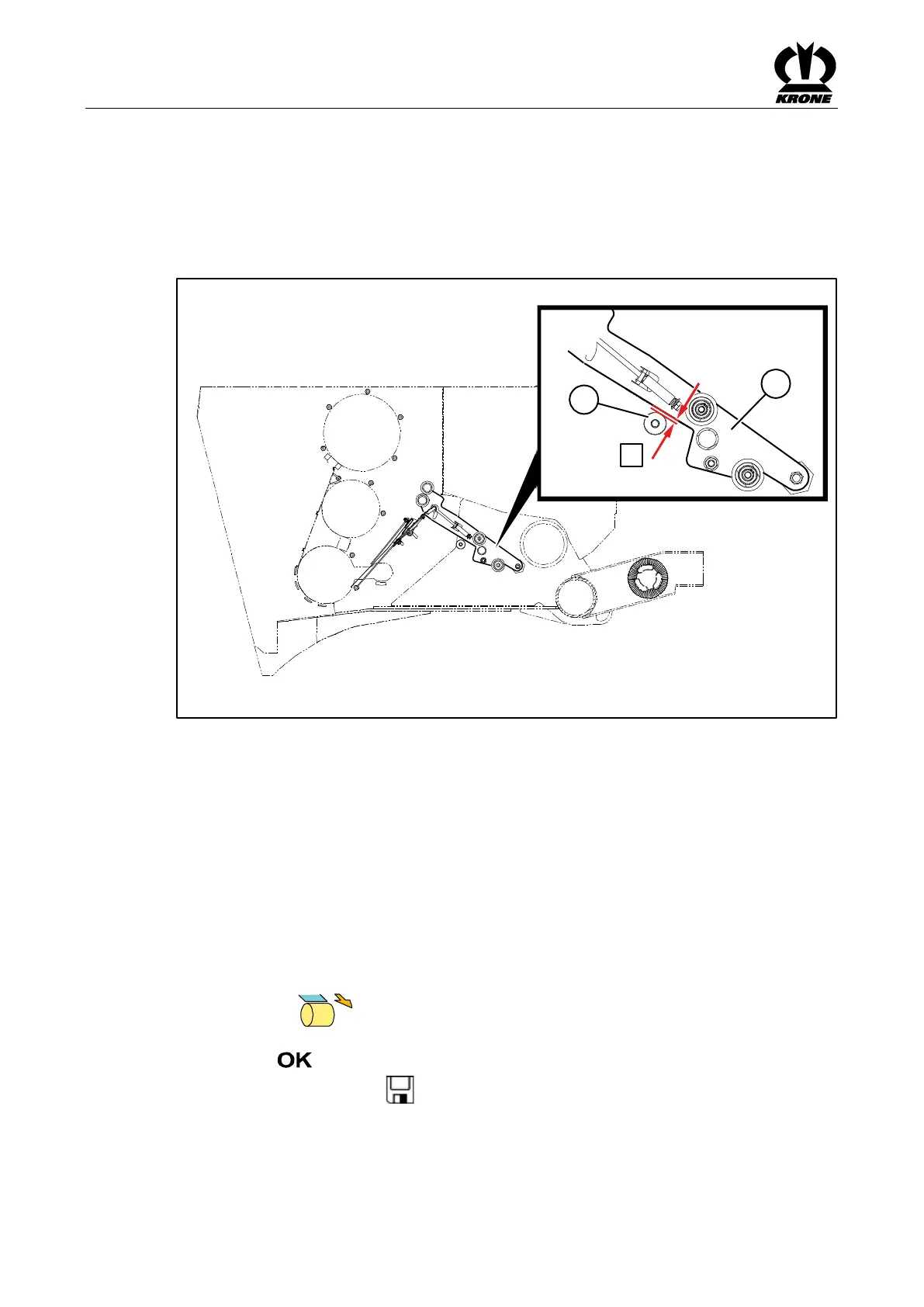 Pos: 50.5.57.6 /B eipacks/Rundb allenpressen/Foli enbindung/Mo dulgruppen Br emse / Spiral walze/Zuführpositi on prüfen und ei nstellen _Text_alle Compri ma @ 513\mo d_150339490 3768_78.docx @ 3529386 @ @ 1
