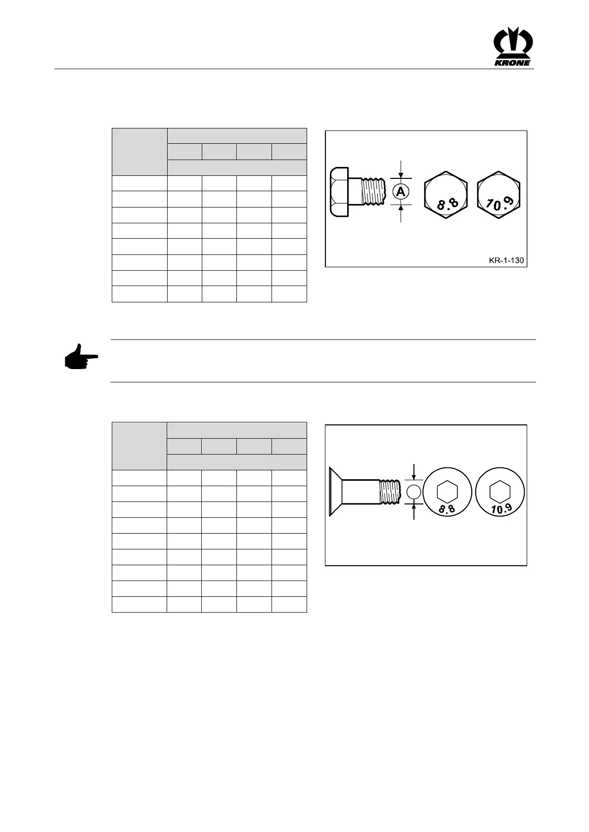 Krone Comprima V 150 XC - Metric Thread Screws with Fine Thread; Metric Thread Screws with Countersunk Head and Hexagonal Socket