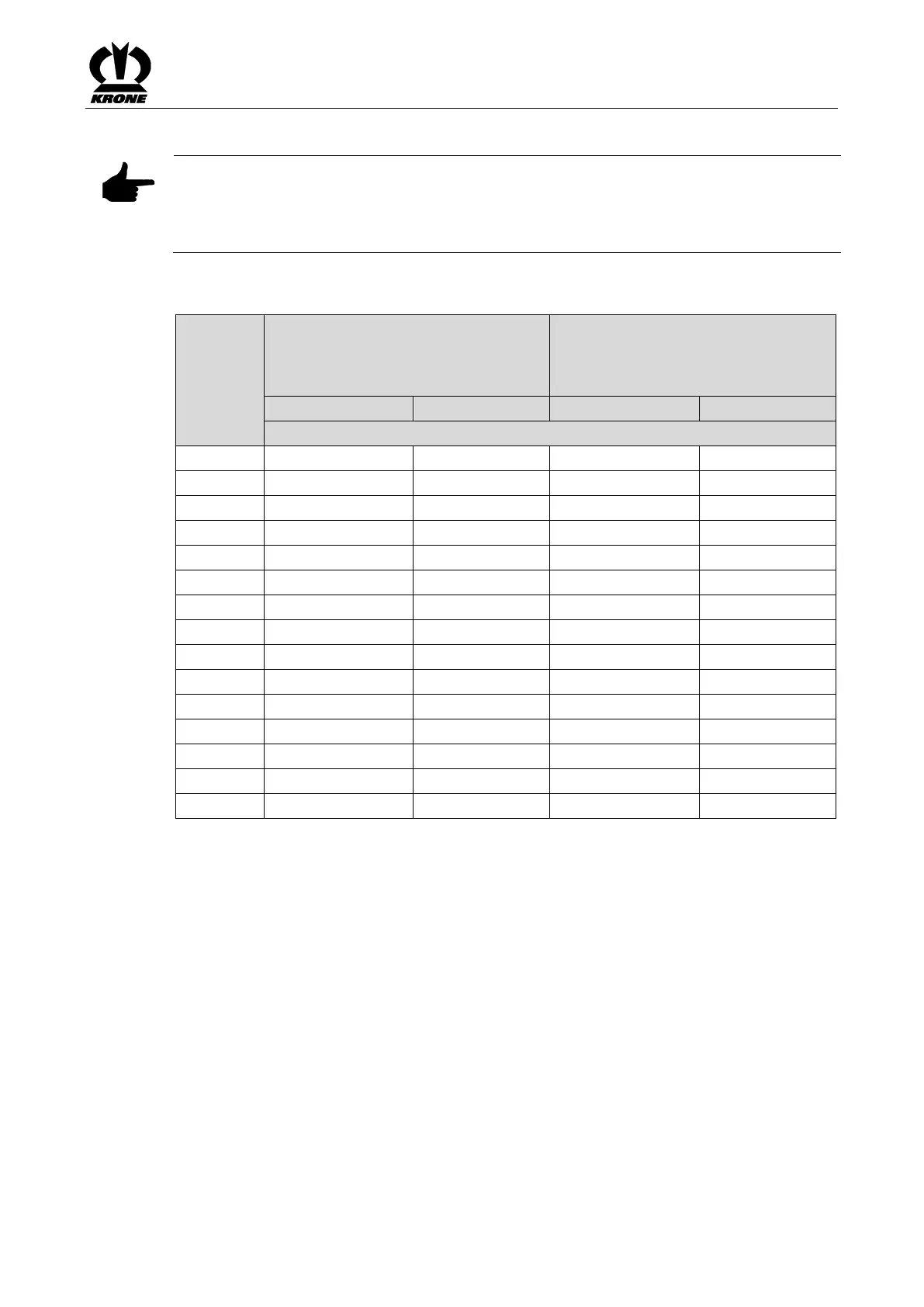 Krone Comprima V 150 XC - Tightening Torques for Locking Screws and Bleed Valves on the Gearboxes