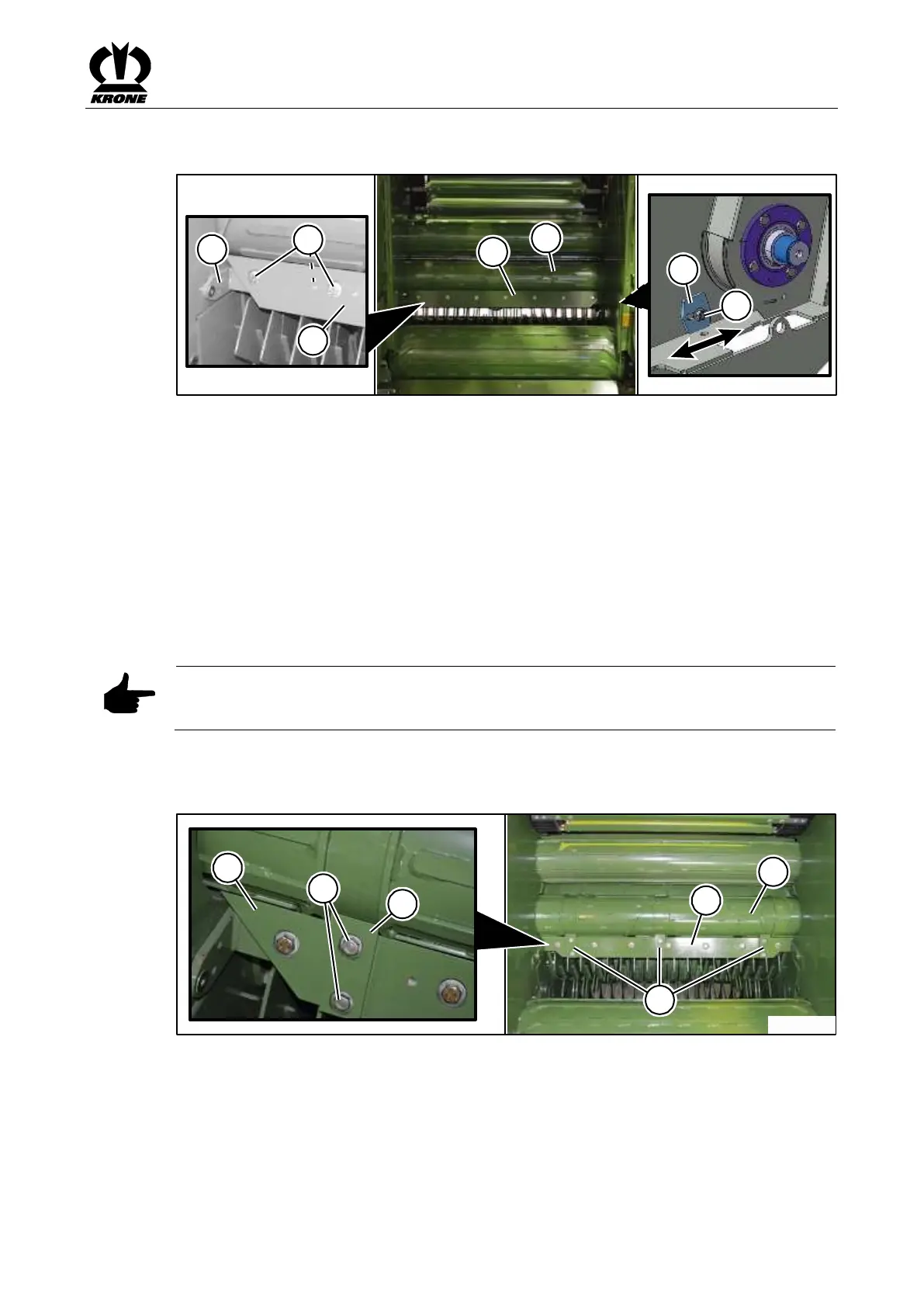 Pos: 52.13.17 / BA/Wartung/Ru ndballenpresse/F olienbindung W artungAbstreifs chiene einst ellen_Hin weis @ 350\mod_1 436860619780_ 78.docx @ 26 29551 @ @ 1