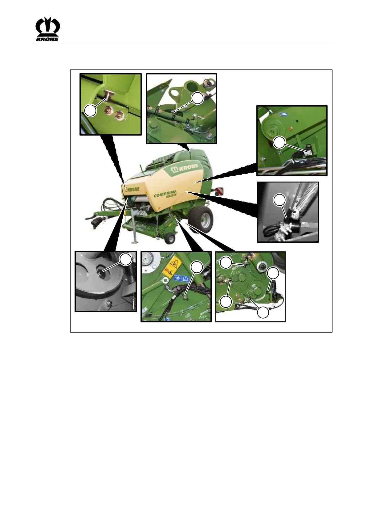 Pos: 52.41 /BA/ Wartung/Rundballe npresse/Sens oren/Lage der S ensoren lin ks_bild_Comprim a V RP025 @ 5 05\mod_14 99420348515_7 8.docx @ 34 77614 @ @ 1