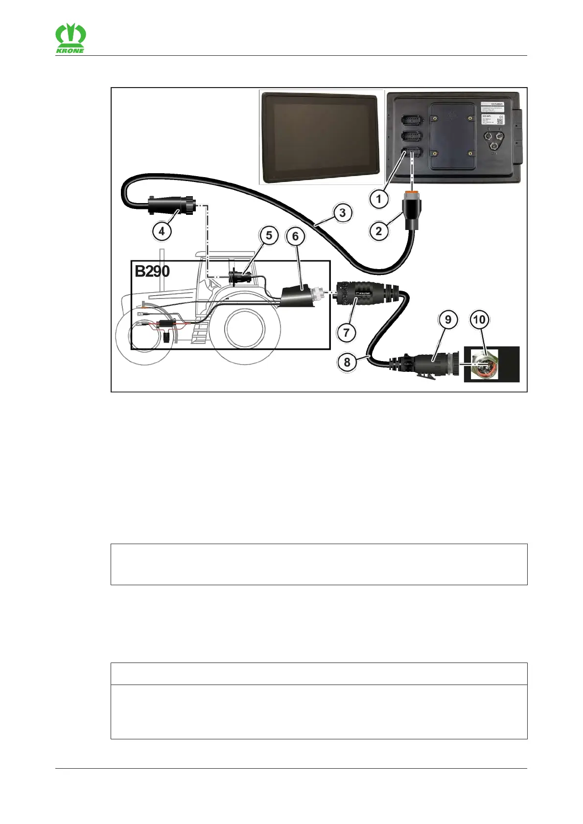 ü The accessories kit B290 “KRONE tractor retrofitting” is mounted.