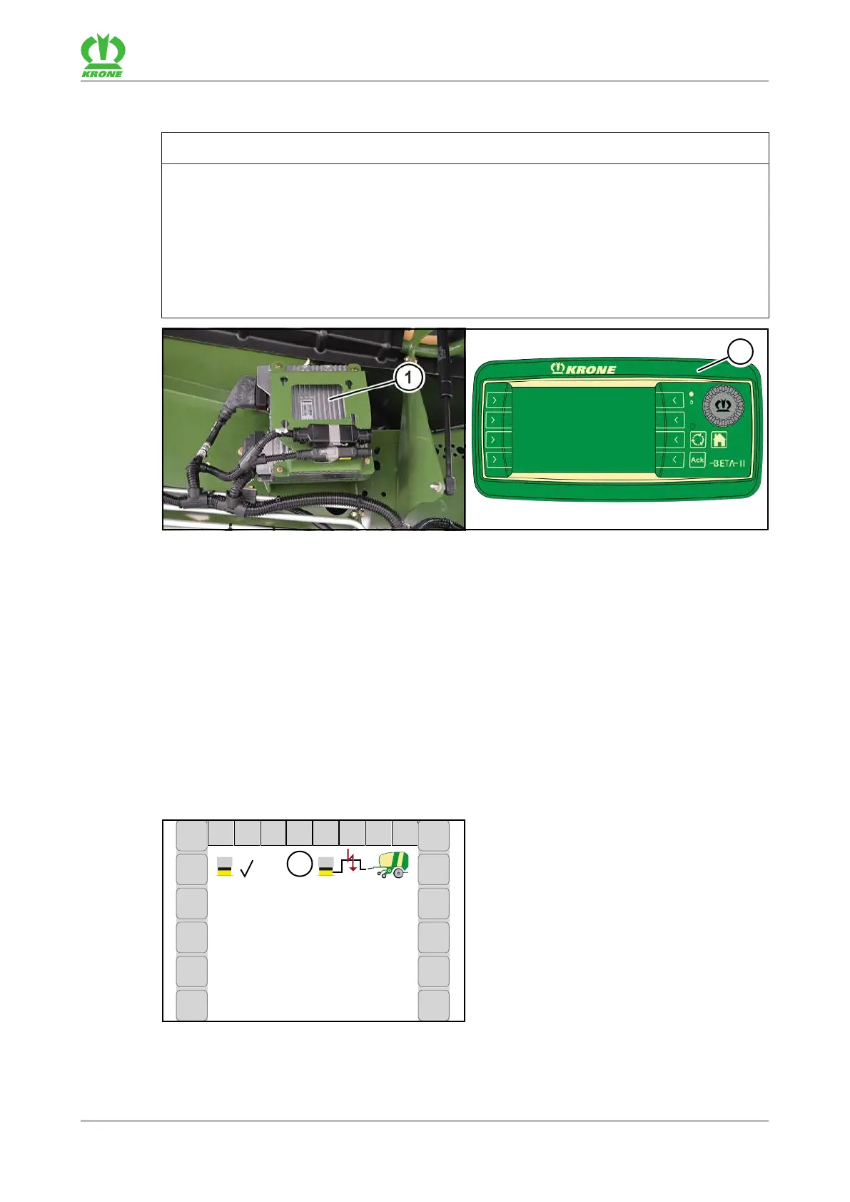 The KRONE BETA II terminal is not equipped with ISOBUS Shortcut Button. The icon (1) is