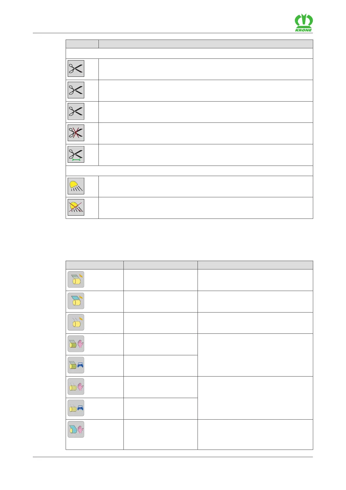 The available icons comply with the equipment of the machine. The following represented icons
