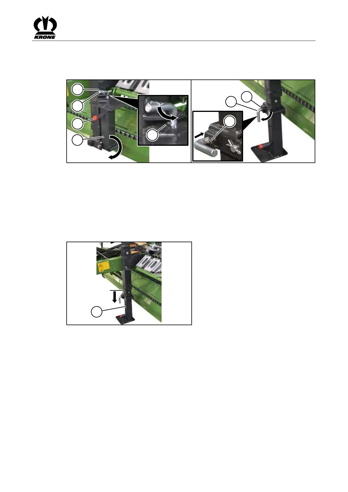 Pos: 27.42 /BA/Sic herheit/Rund ballenpresse/Abst ellstütze (h ydr)_Stützfuß ausfa hren_Bild_Co mprima F/V @ 363\mod_14 39818888342_ 78.docx @ 2 672164 @ @ 1