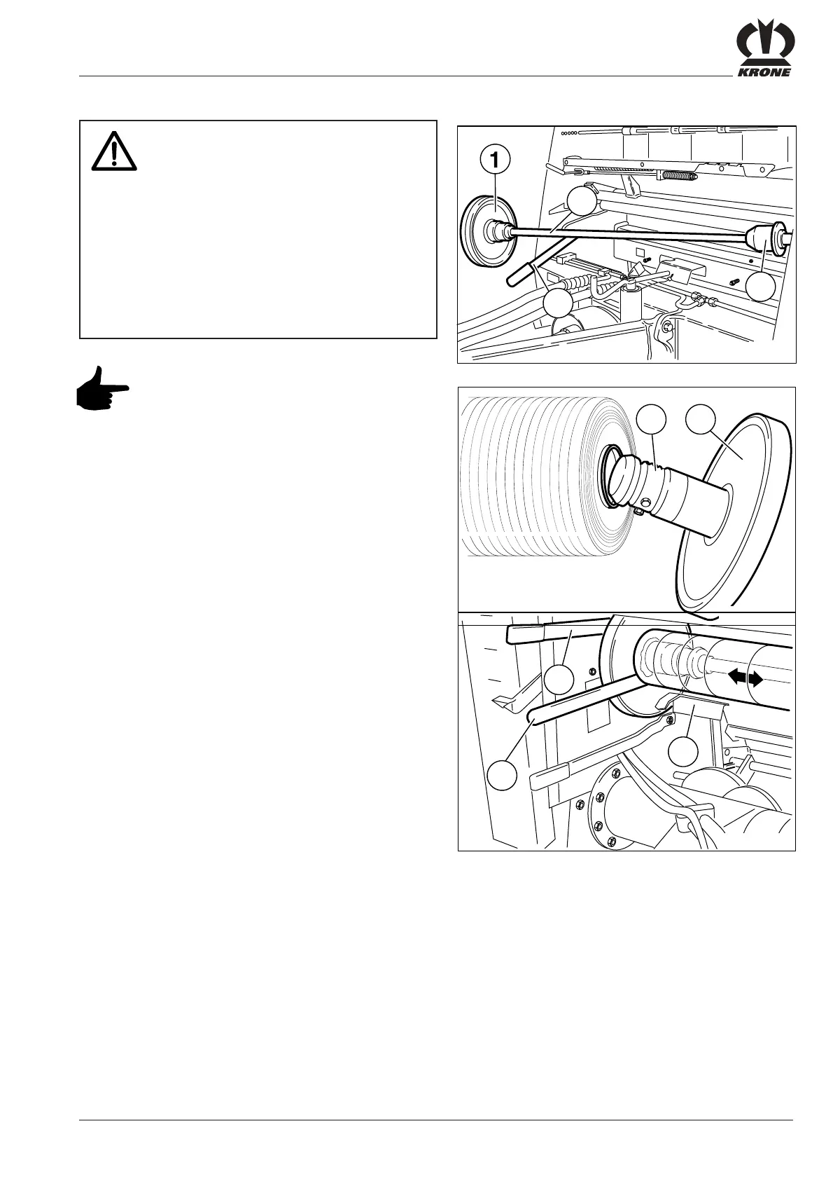 • Swing the brake disc (1) and the netting roll mounting