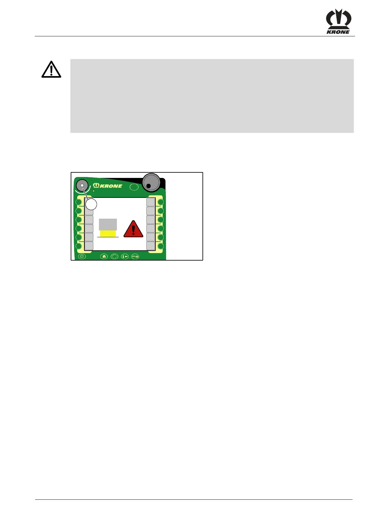 • By actuation of the ISOBUS short cut button (1) the machine functions are switched off in order to