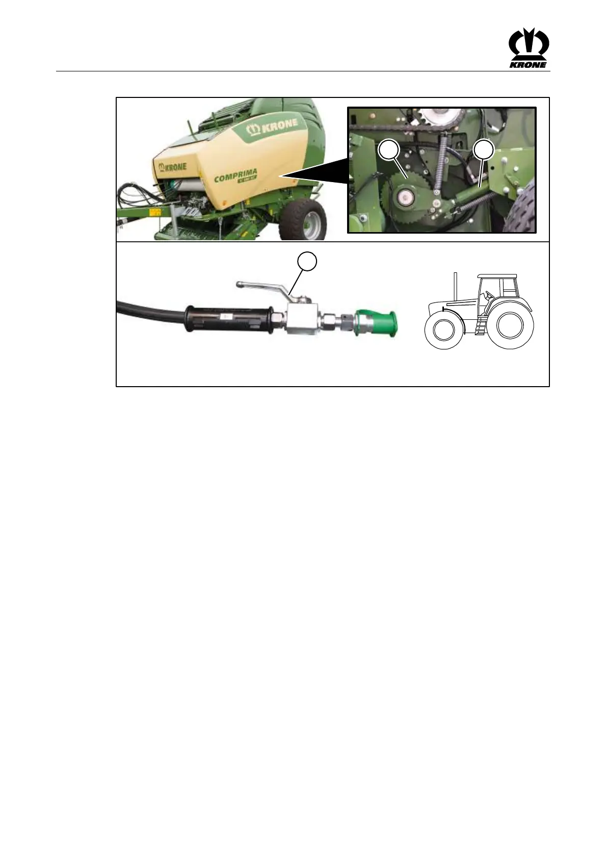 Pos: 48.118.9 / BA/Bedienung /R undballenpresse/R eversieren/H ydraulische R ückdreheinrichtu ng_Bild_Co mprima F/V @ 510\mod_15 01668253479_7 8.docx @ 34970 16 @ @ 1