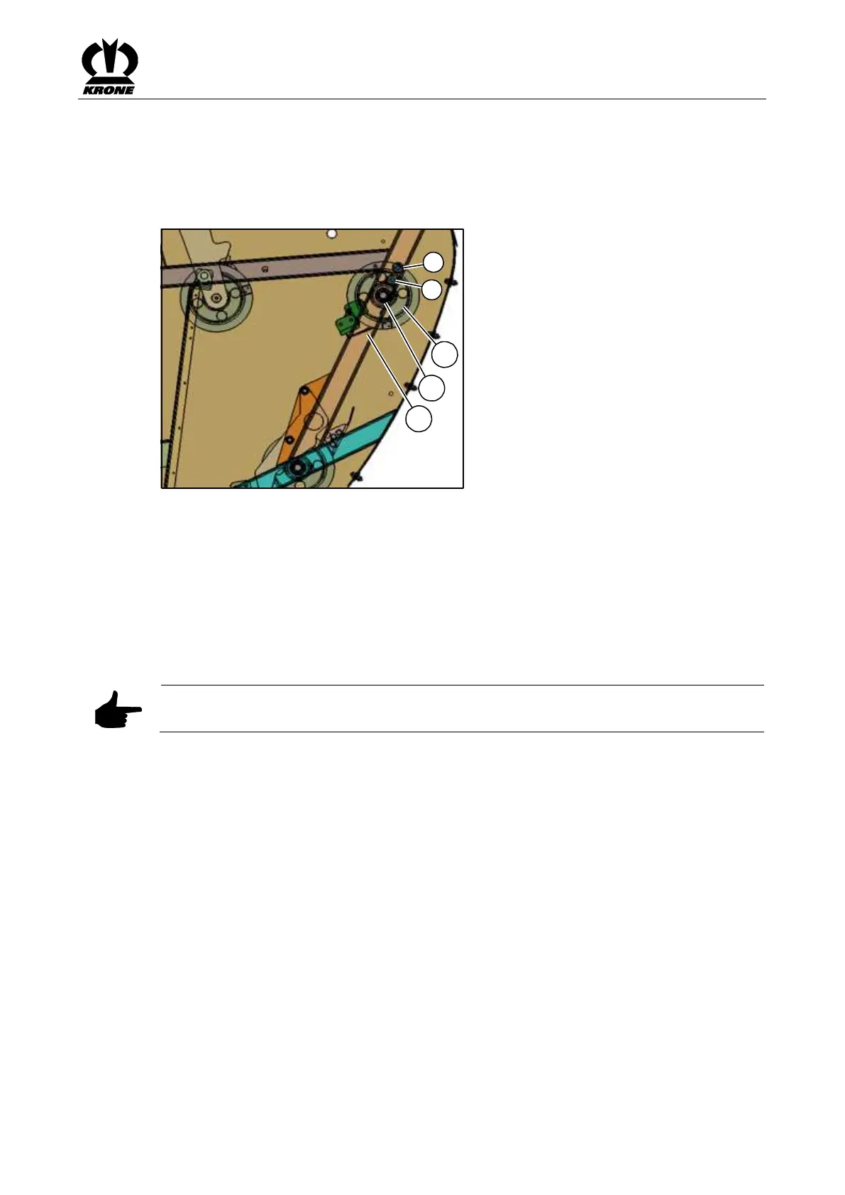 Pos: 52.104.11 /B A/Wartung/R undballenpresse/U mlenkrolle versetzen/Hin weis: Umlenkroll e nur 1 Loch höher montiere n @ 215\mod_ 1390814073967 _78.docx @ 176 1437 @ @ 1