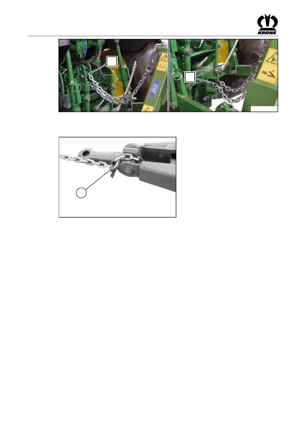 Pos: 44.42.8 /B eipacks/Sonstige Beipacks_maschi nenueberg reifend/Sicheru ngskette 178 kN/Sic herungskette an den Traktor montier en Text @ 430\ mod_14555511 19515_78.doc x @ 2969694 @ @ 1