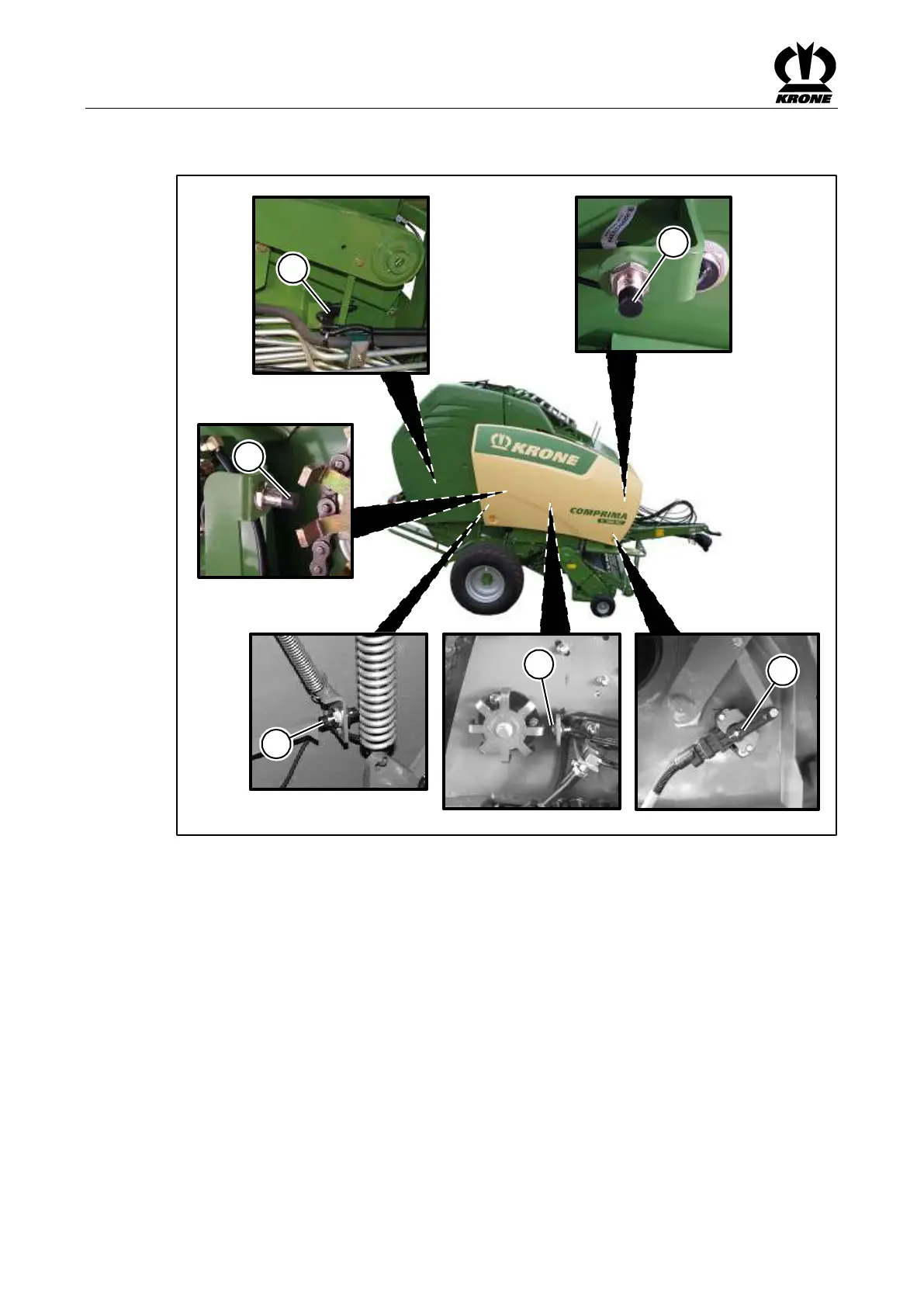 Pos: 52.37 /BA/ Wartung/Rundb allenpresse/Sens oren/Lage der Sensoren rec hts_bildlegende_C omprima V RP 025 @ 508\ mod_150090 6097371_78.doc x @ 3490780 @ @ 1