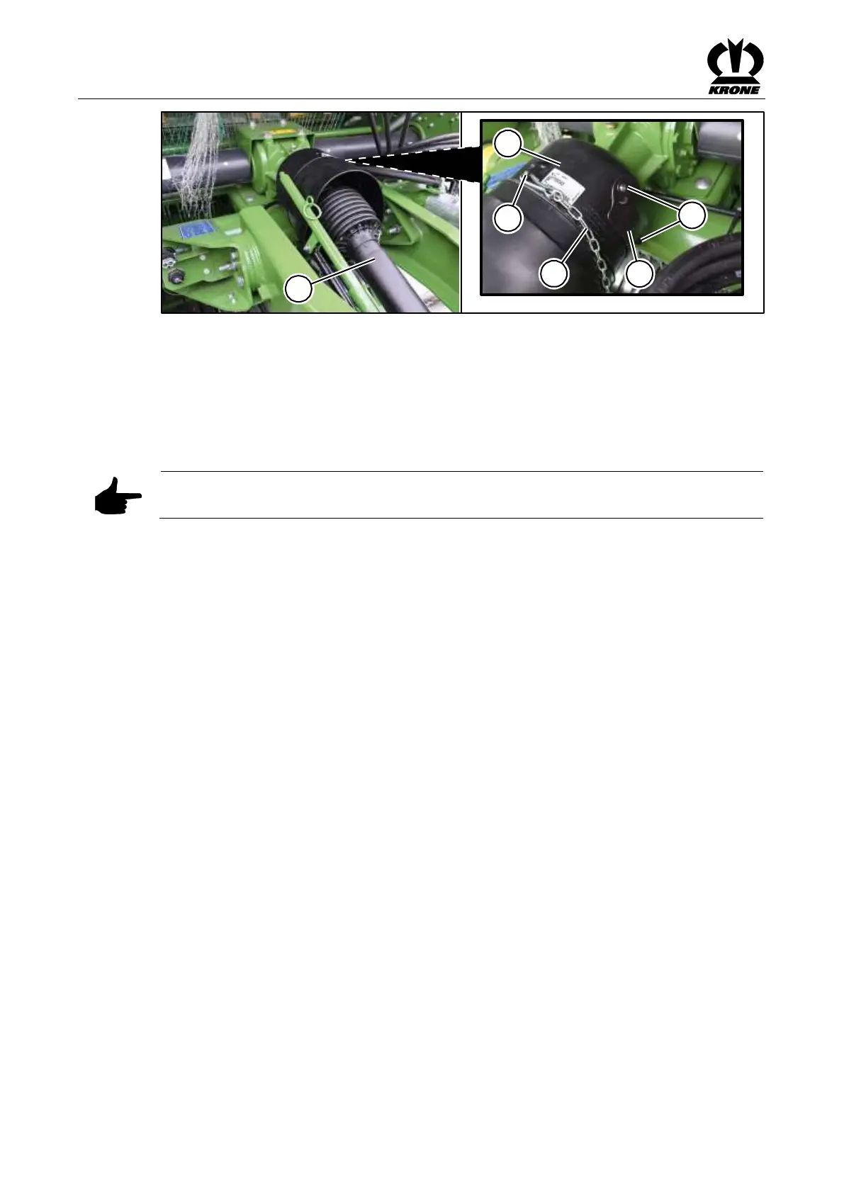 • Hook the universal shaft chain (5) into the eye (4) at the protective cap (3).