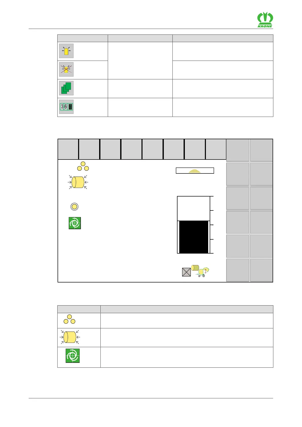 The available icons comply with the equipment of the machine. The following represented icons