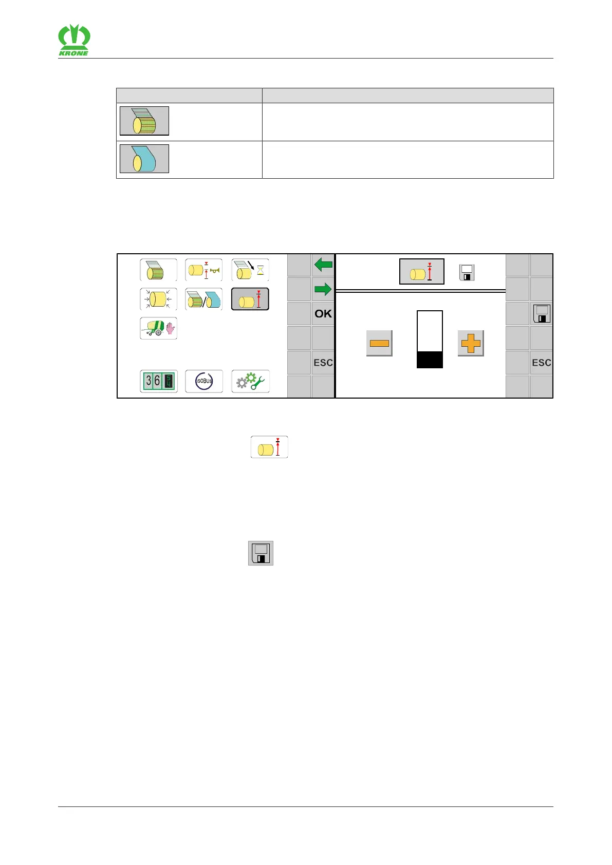 If the bale diameter is not reached or is too high, the filling correction can be used to correct the