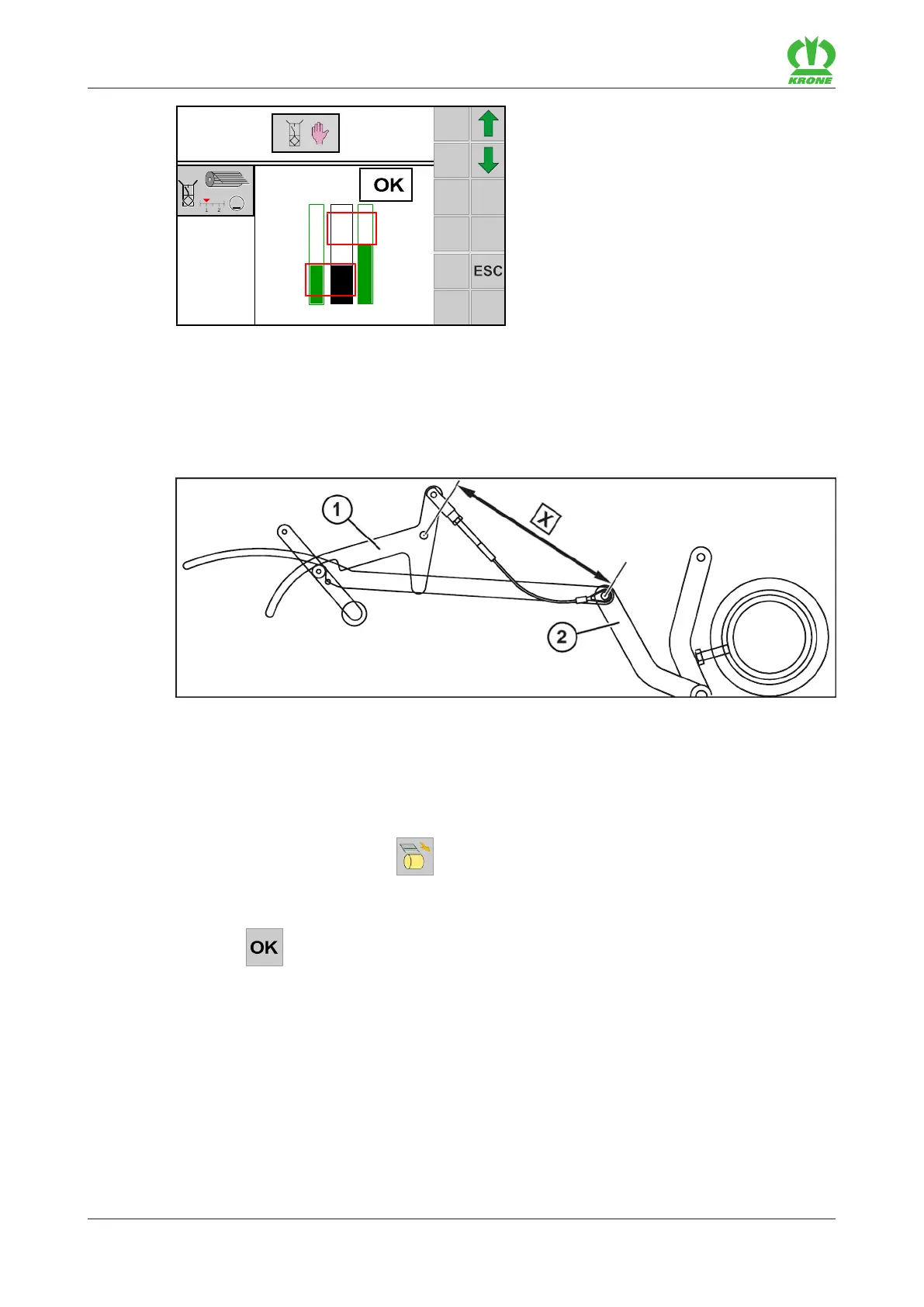 The distance(X) between the pivot point of the ratchet(1) and the adjusting lever(2) must be