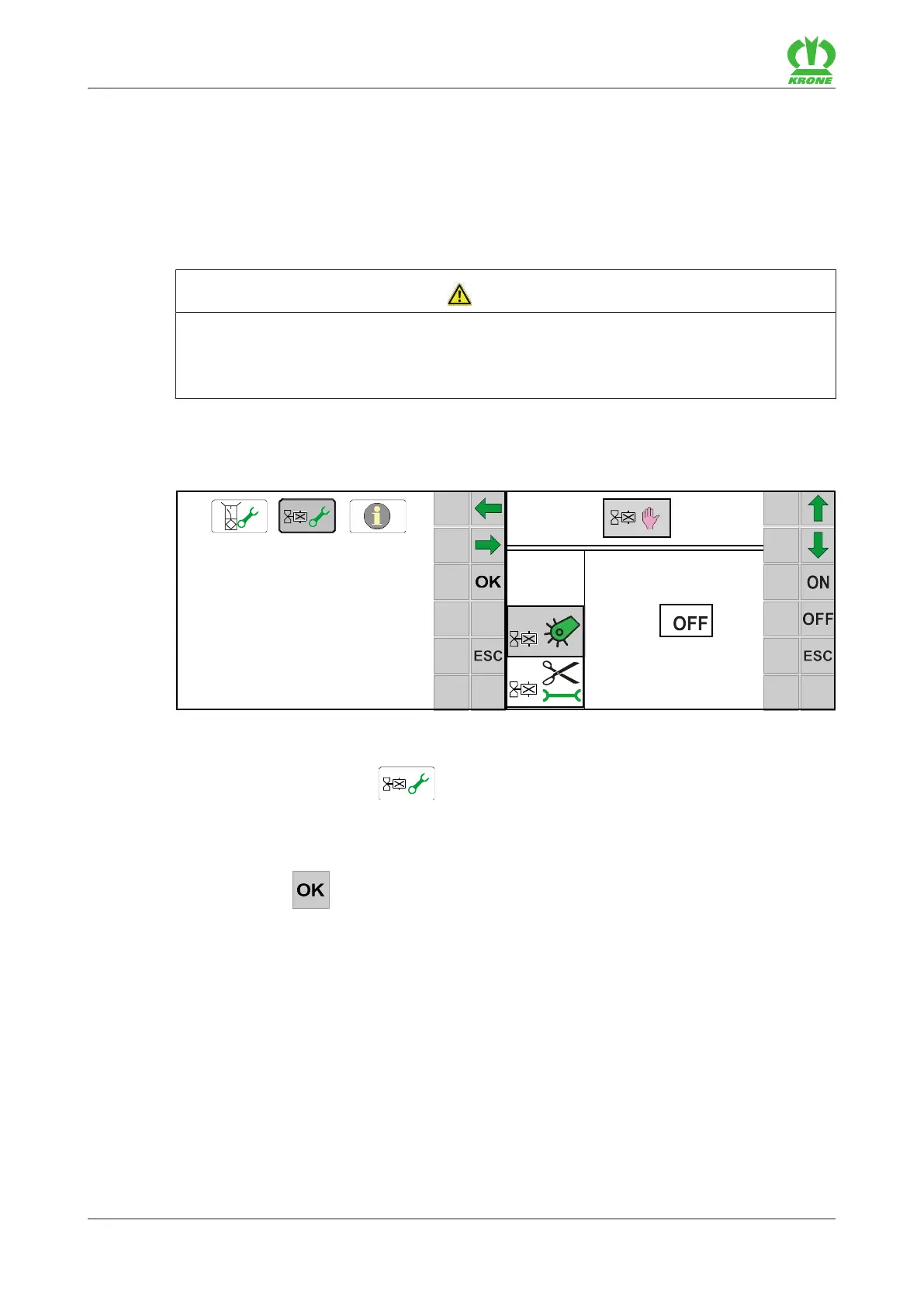 ð A warning opens which refers to the operating instructions.