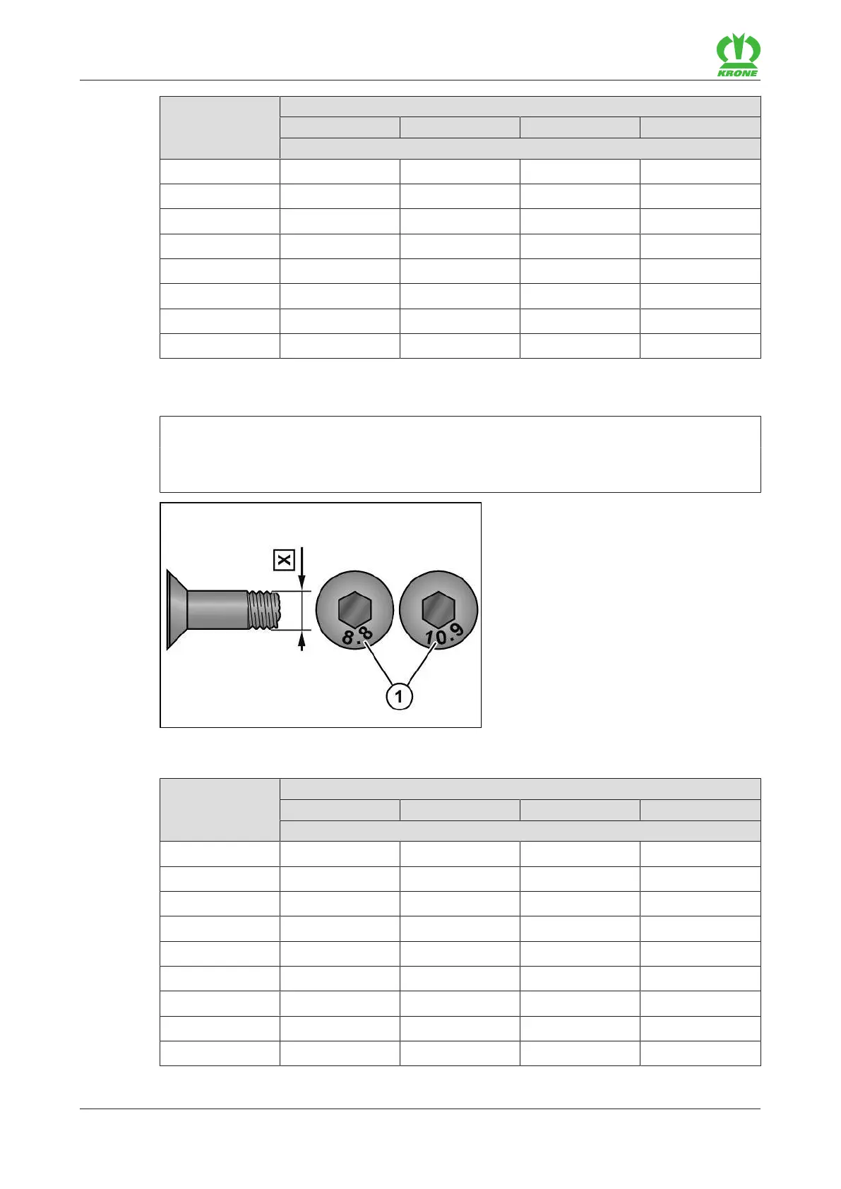 X Thread size 1 Strength class on screw head