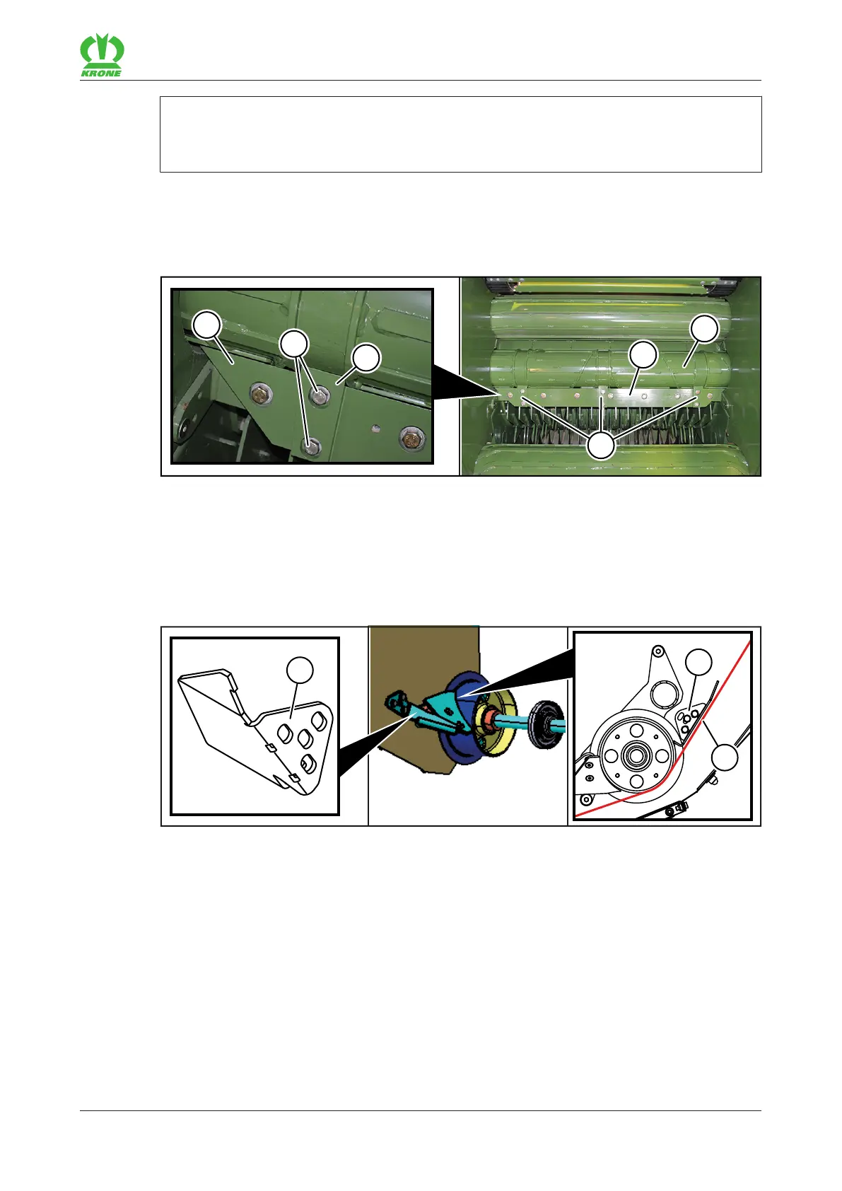 Set the stone deflector(1) parallel and at a distance of 5-10 mm from the bale formation