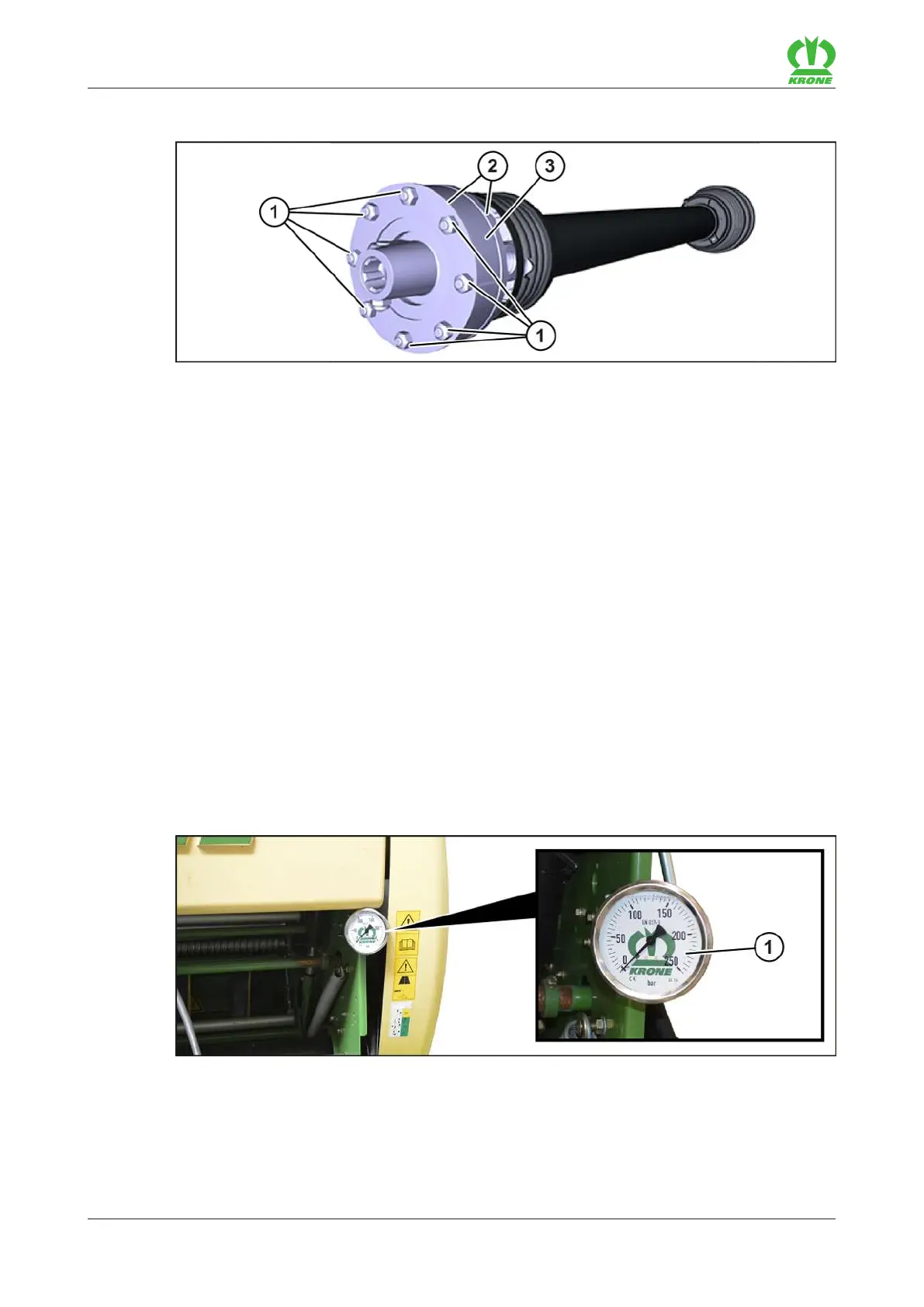 requires servicing. The baling pressure can be read off via the pressure gauge(1) at the front