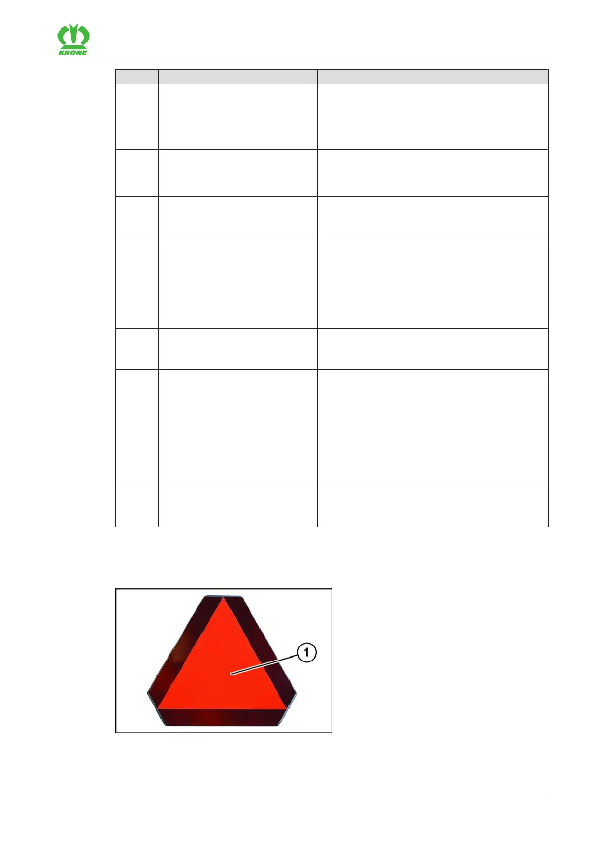 The SMV emblem (Slow-Moving Vehicle) (1) can be mounted on slow-moving machines or