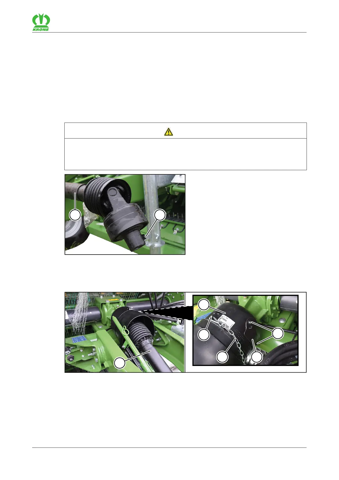 If the danger zone of the universal shaft is ignored, persons can be seriously hurt or killed.