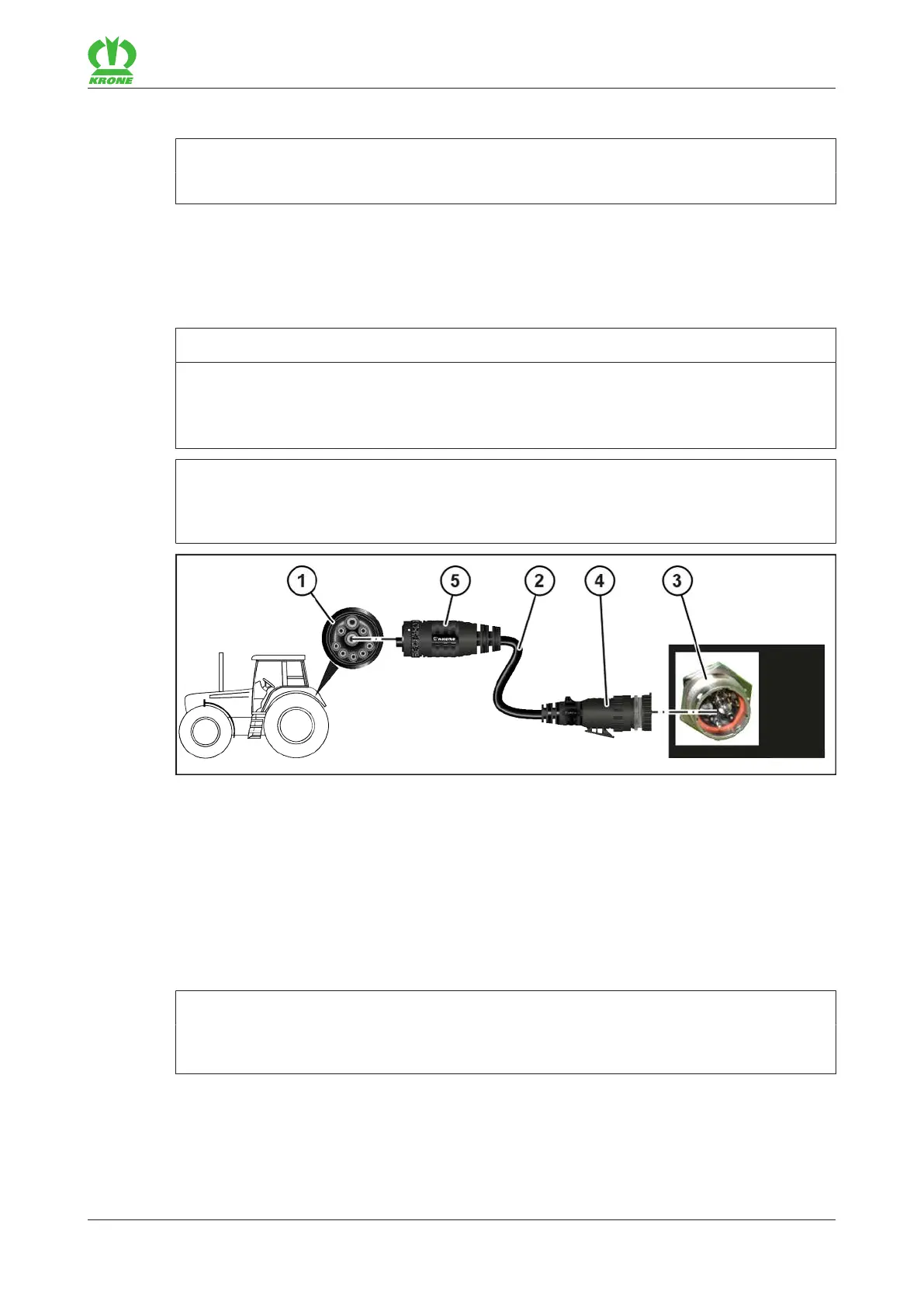 Connect the 9-pole plug (5) of the cable (2) to the 9-pole ISOBUS socket (1) of the tractor.