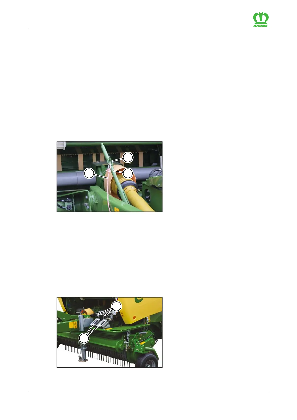 To attach the safety cable(1) to the tractor, attach the other end of the safety cable(1) to a