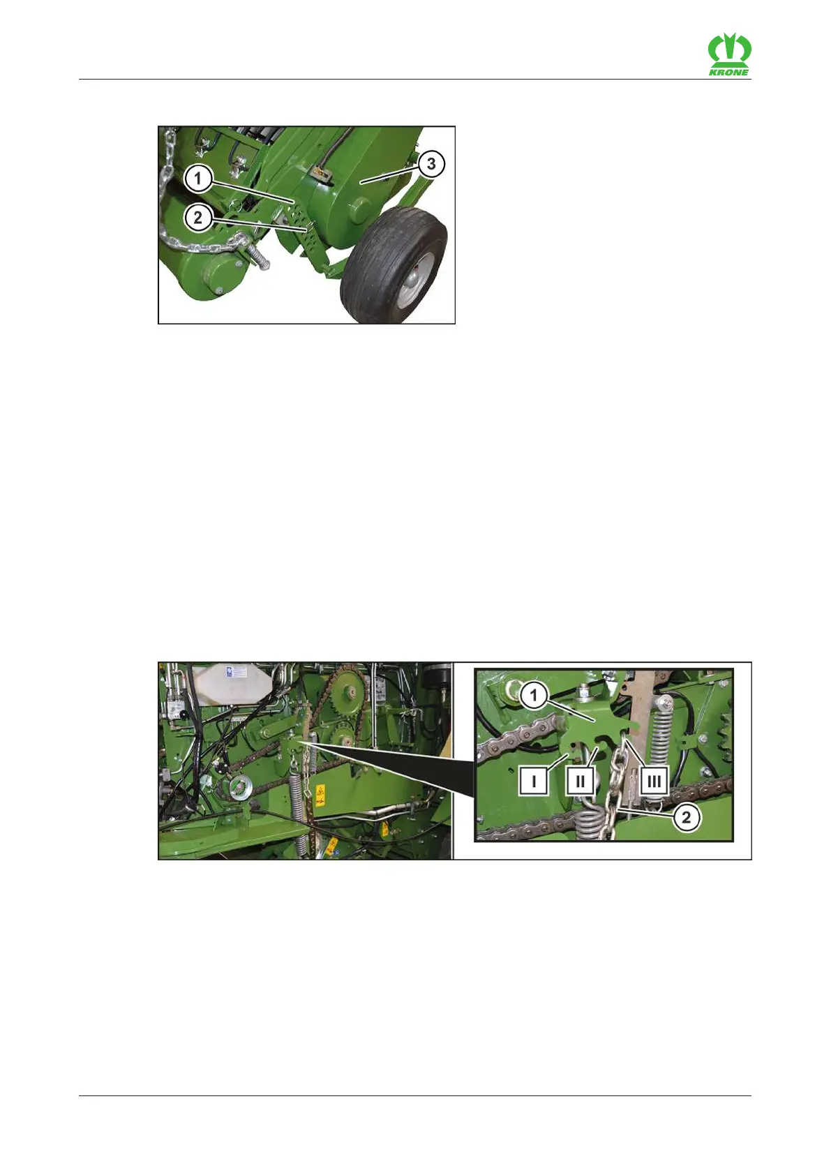 If ground conditions are extreme, the height of the pick-up can also be set via the chain(2). To
