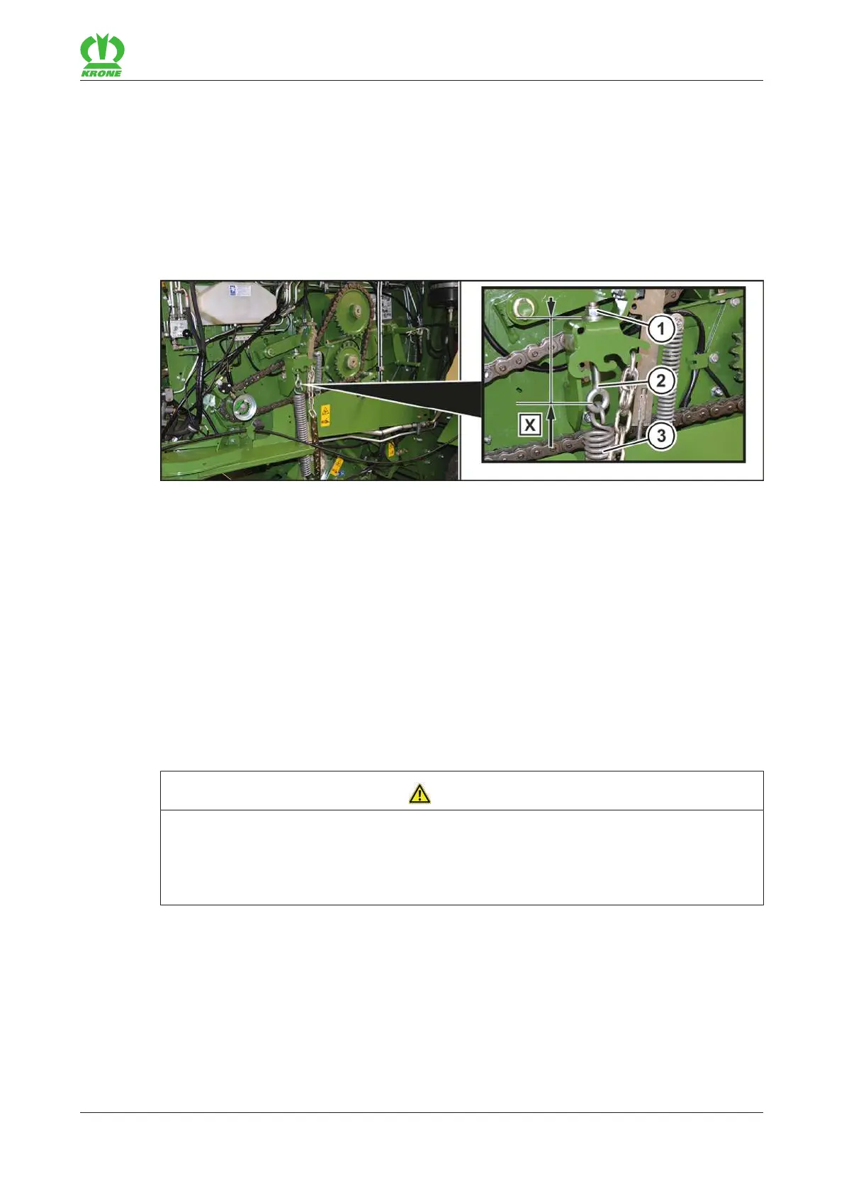 The crop press roller unit is used for accident protection! If the machine is operated without a