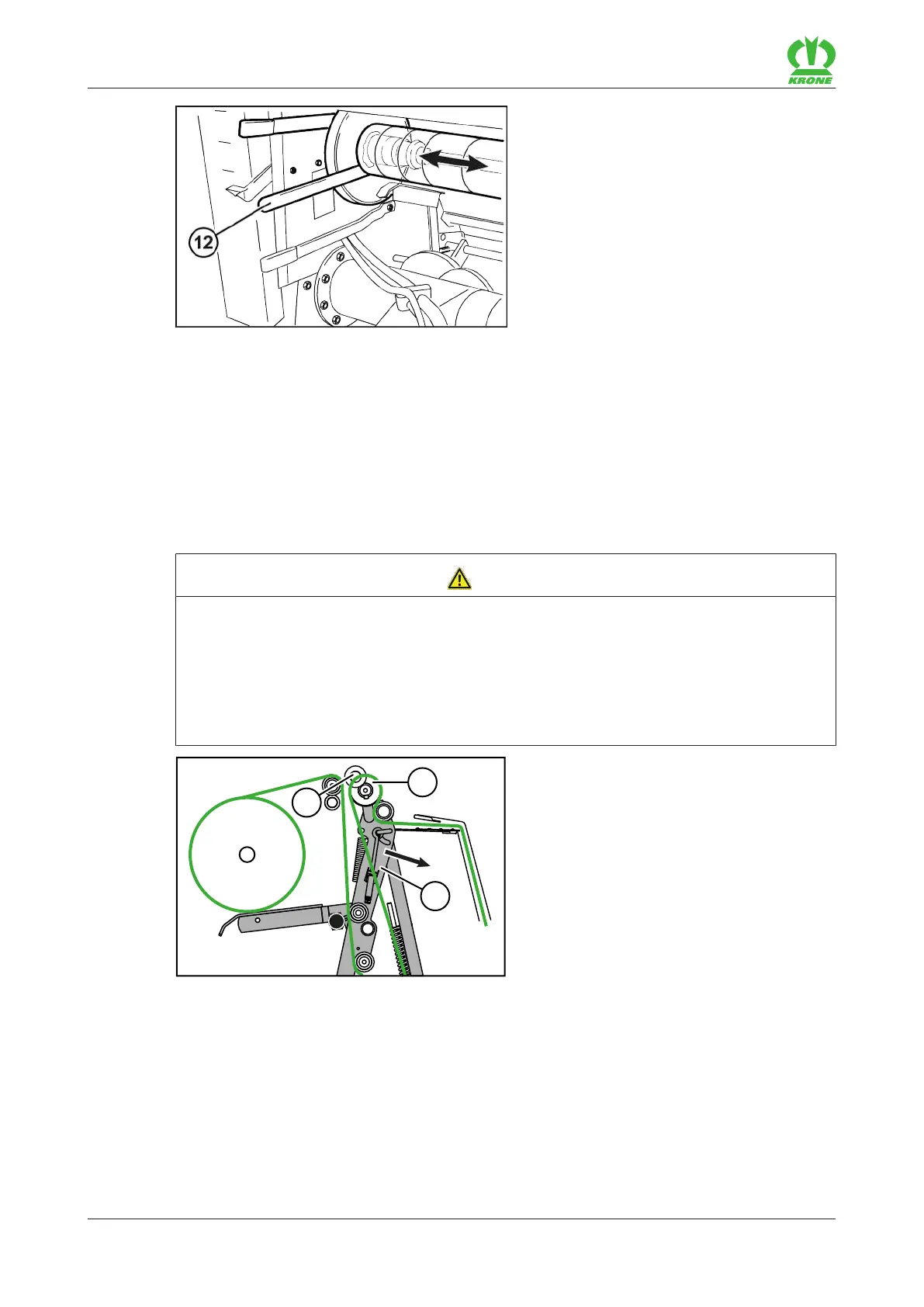 Use a mounting lever (12) to push the net or film roll(9) in the required direction of the arrow