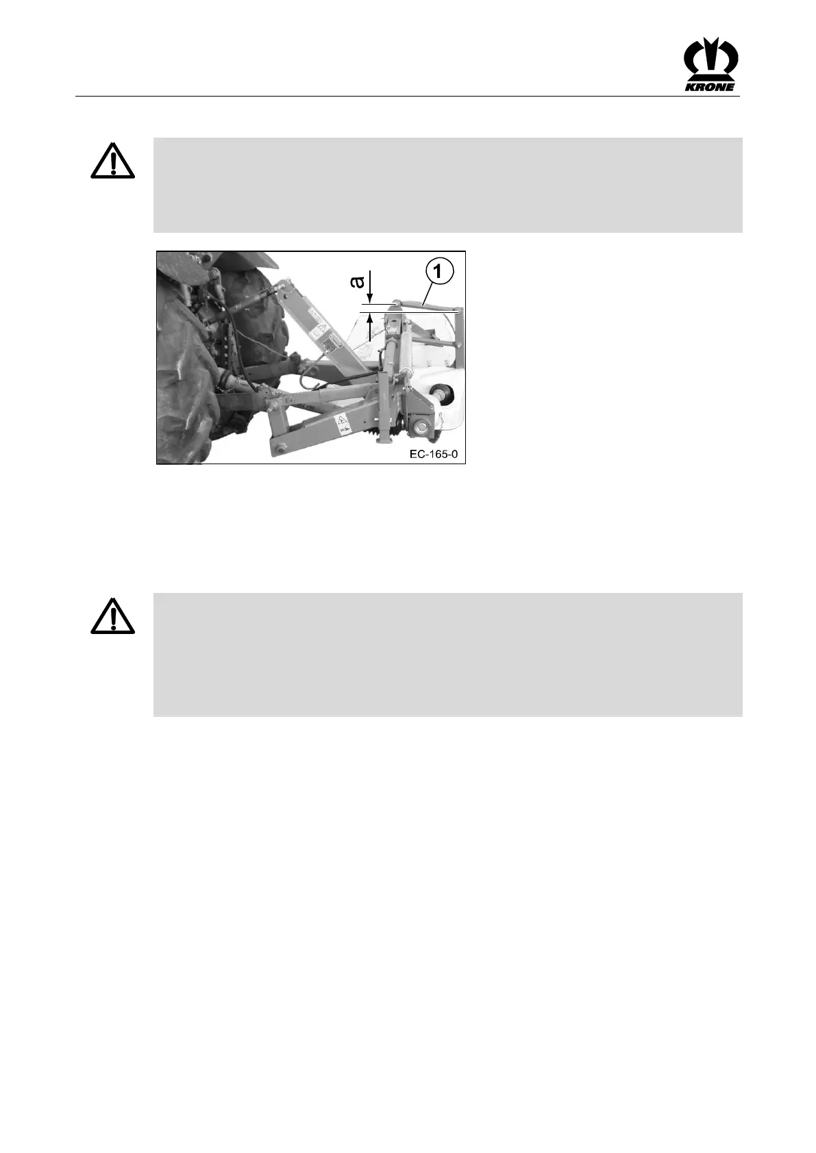Pos: 21.24 /BA/Sicherheit/EasyCut/Gefahr - Einstellung der Unterlenkerhöhe am Traktor @ 9\mod_1220882859813_78.docx @ 128789 @ @ 1