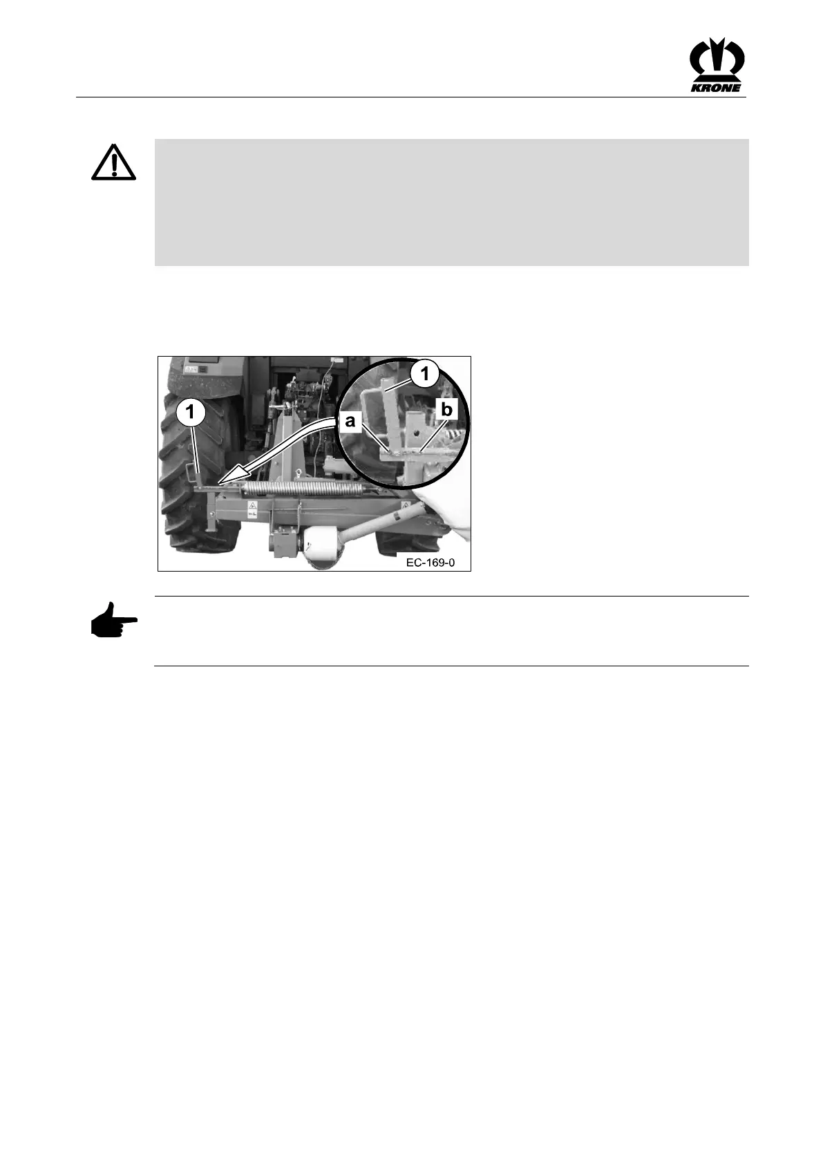 To adjust the compensation springs, set the disc mower to transport position. Only in this