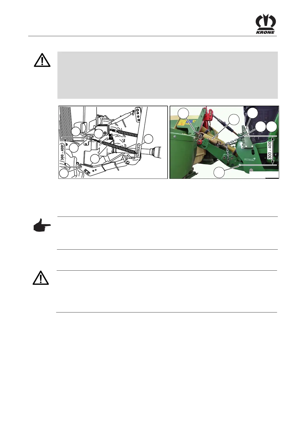 Pos: 12.32 /BA/Einste llungen/Mähwerke/Ea syCut/Entlastung sfeder(n)/Ei nstellen der Entlastungsf edern am Traktor Maß 300-40 0 Hinweis @ 10\mod_1221737 438036_78.doc x @ 136841 @ @ 1